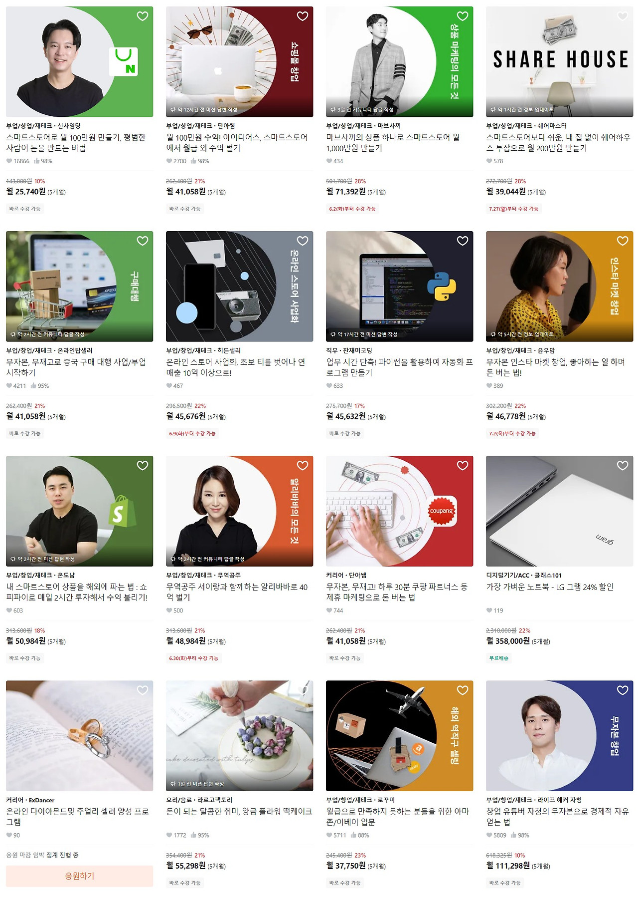 아래와 같이 경쟁적으로 유료 강의를 개설하고 있습니다.