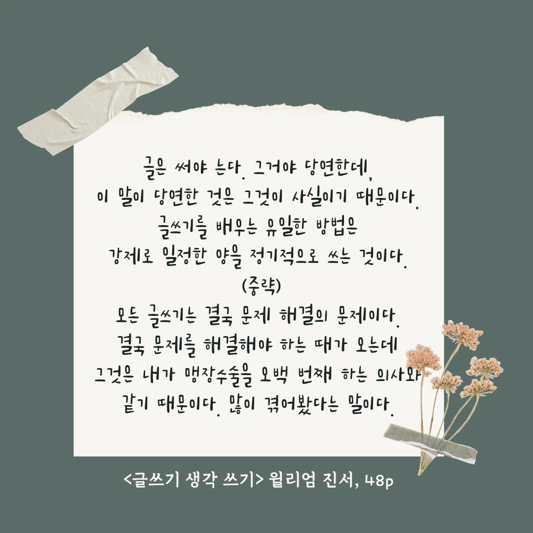 윌리엄 진서가 이야기하듯, 글은 써야 는다는 말에 공감한다.