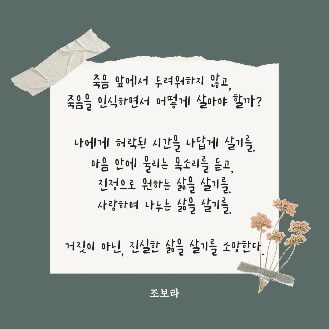죽음을 두려워하지 않고, 죽음을 인식하면서 어떻게 살아야 할까?