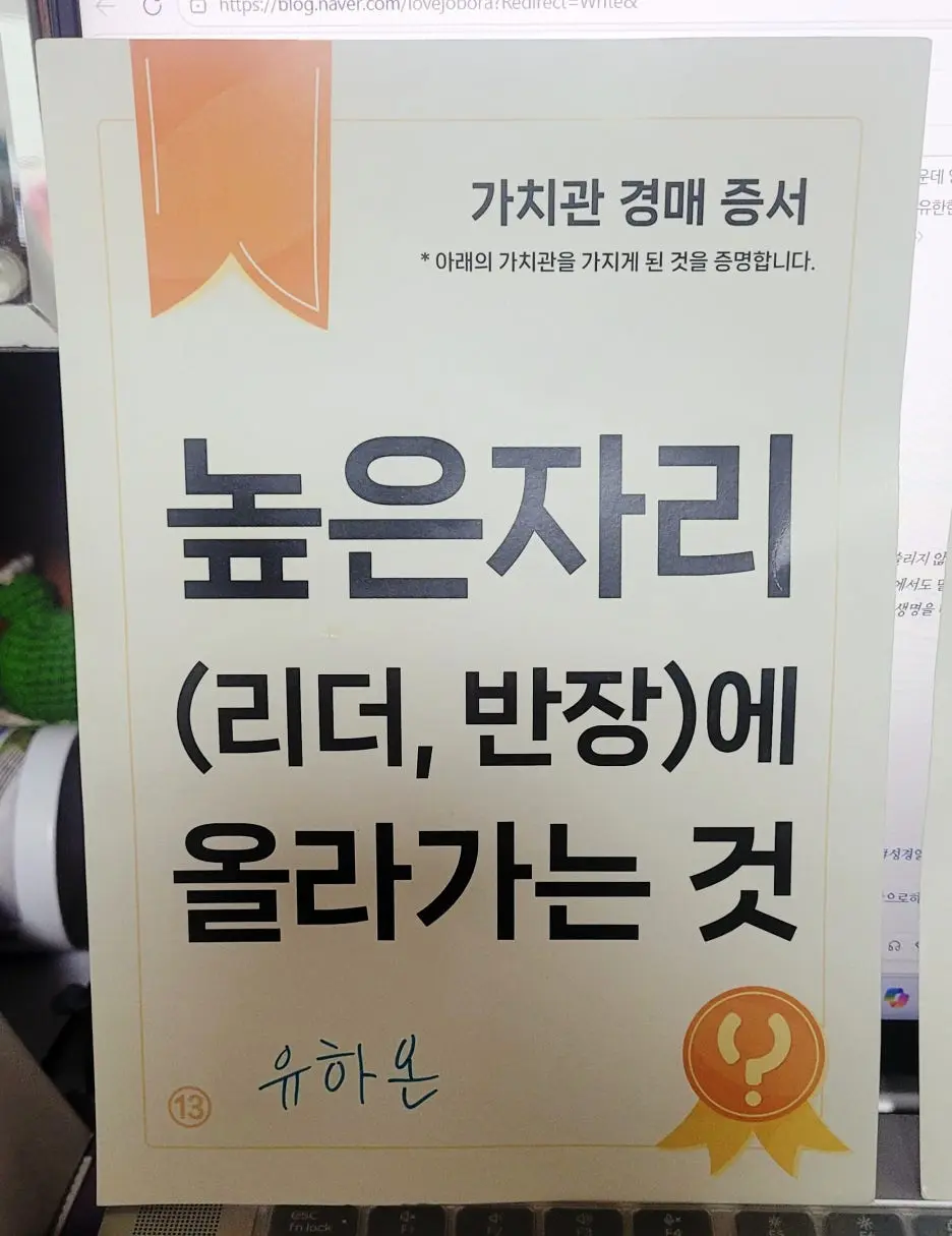 - 가치관 경매 증서 : 높은 자리(리더, 반장)에 올라가는 것 -