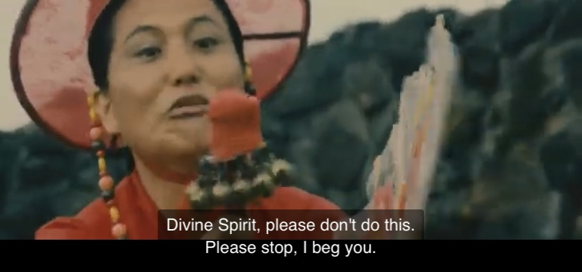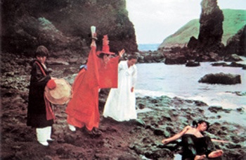 무당이 하는 행위는 무속의 신비로움을 넘어서 섬뜩할 정도입니다. 무당 역을 맡으신 배우 박정자님은 연극 배우도 병행하셨다고 합니다. 접신 연기가 인상적이었어요.