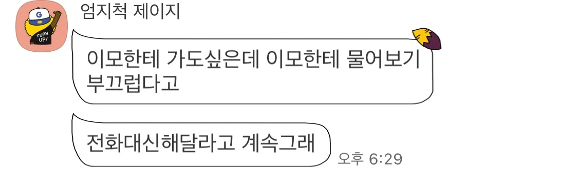 그런데 생각해 보니 (그러지 않았으면 좋겠지만) 어디서 얘네를 괴롭히는 악당이 나타나면 이모 감투를 쓰고 용맹하게 싸울 거 같긴 함.