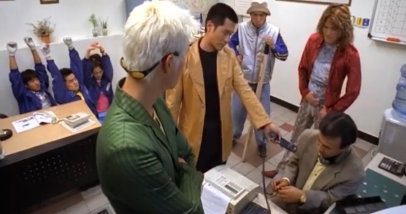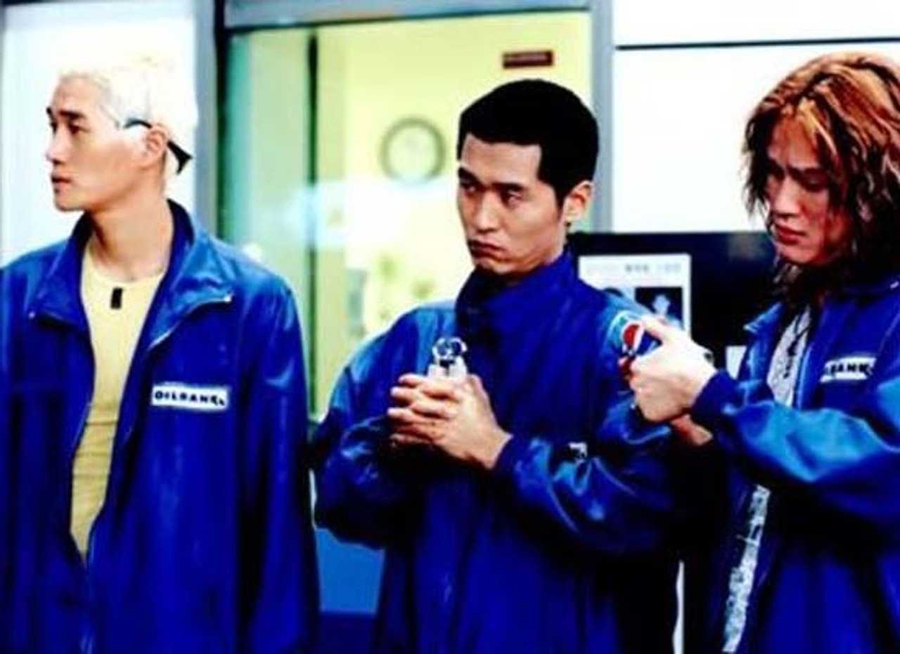 카드결제가 일반적인 요즘과는 달리 당시에는 누구나 지갑에 현찰을 품고 다녔습니다. 건달들(이성재,유오성,유지태,강성진)은 주유소에서 현금은 못 찾았지만 일을 하면(?) 돈을 만질 수 있겠다 판단하고 사장과 알바생들을 2층 숙직실에 가둬놓습니다.