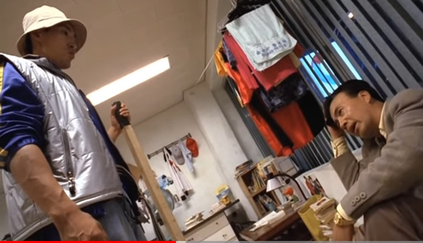 → 운 좋게 한명은 도망칩니다. 그길로 달려가 동네 양아치 용가리(유해진) 패거리에게 도움을 요청합니다. 이어 용가리보다 높은 조폭 김만배(김학철)에게도 이릅니다.