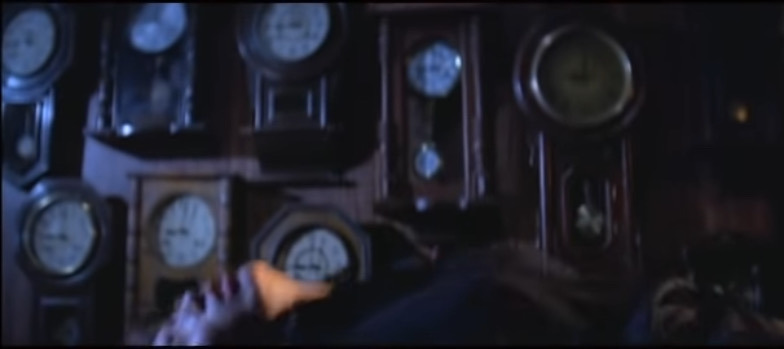 성적인 은유를 추가 달린 벽걸이 태엽시계에 빗댄 것 같습니다. 아주 집안 곳곳에 시계가 있어요.