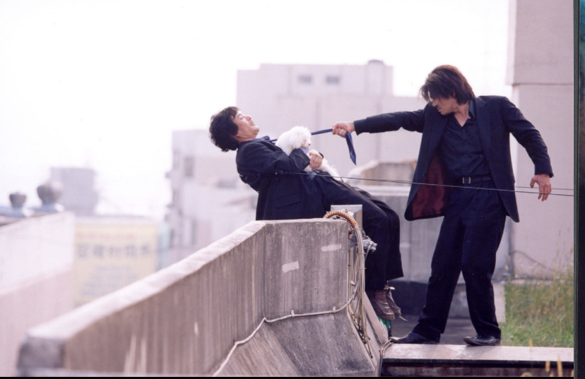 오대수가 아파트 옥상에서 만난 남자. 그는 왜 강아지를 안고 자살하려고 했을까요? 그는 자신이 짐승만도 못한 놈이라는 말을 했었습니다. 친절한 설명은 없지만 그는 사실 강아지와 사랑하는 사이였습니다. 동물 보호자로 사랑하는 게 아니고요..