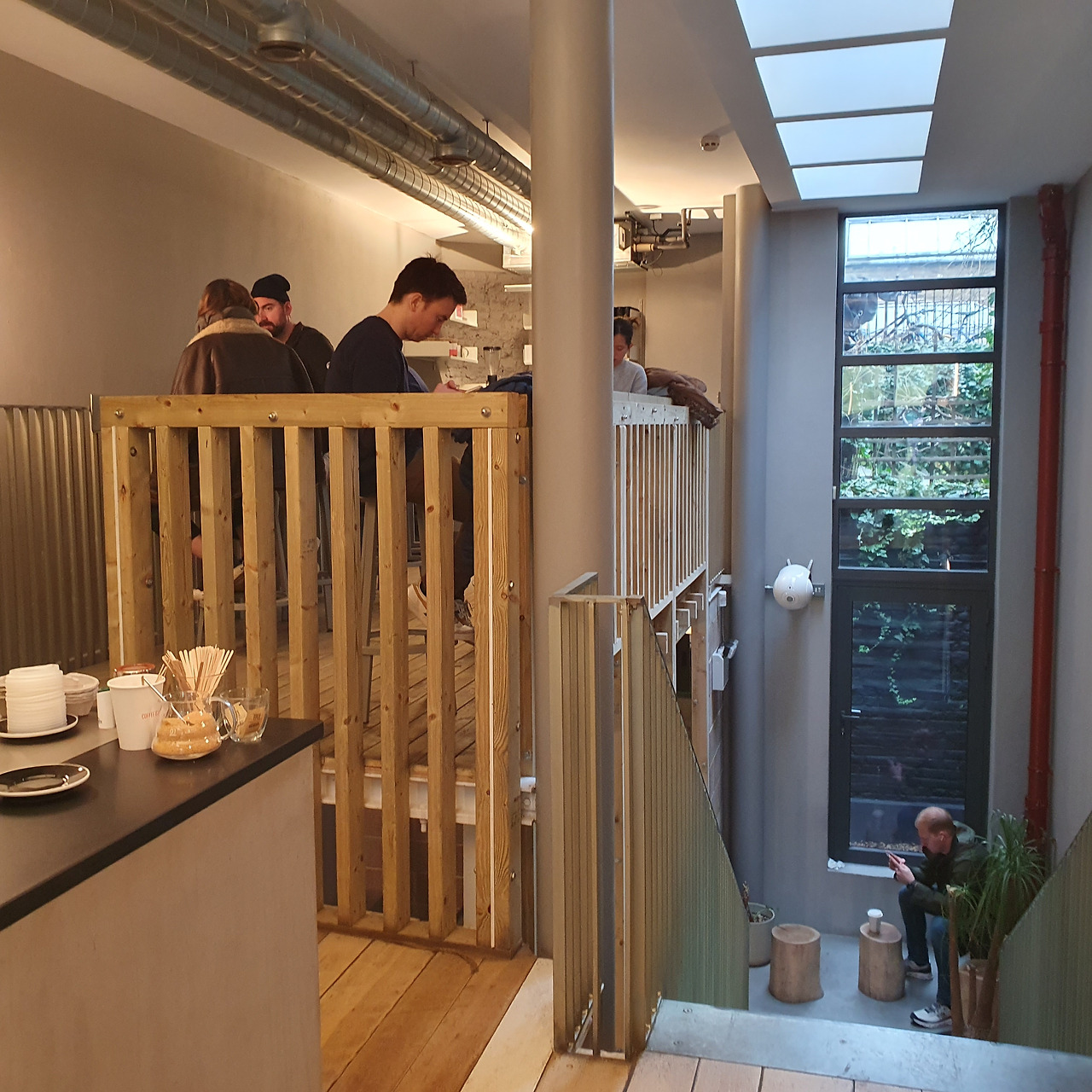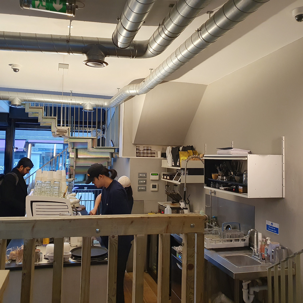 인테리어는 되게 심플하다. 그렇다고 해서 빈약한 것은 아니다. 주문하는 곳과 메이킹하는 곳은 같은 위치에 있고, 지하와 메이킹하는 곳 바로 위층에 앉을 수 있는 테이블과 의자가 있다. 메이킹 공간이 작긴 하지만 커피 메이킹에 있어 다들 전문가처럼 동작들이 간결하고 군동작이 없었다. 지하층은 꾸며져 있다기보다는 나무들로 이뤄진 인테리어들이 전체적으로 따뜻한 느낌으로 다가왔다. 인테리어가 풍기는 분위기는 심플 is best 이런 느낌이었다. 지하는 지하대로 격리된 느낌이지만 메이킹 위층은 잠깐 짬을 내서 여유를 조금 즐기고 갈 수 있게끔 분리된 느낌이었다. 또한 드립 내리는 곳도 있어 전문성이 더 돋보였다.