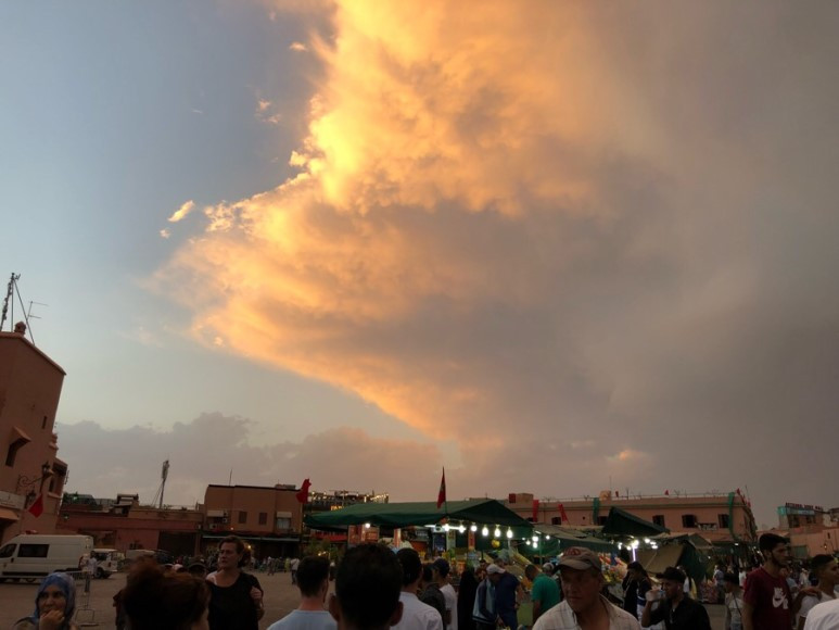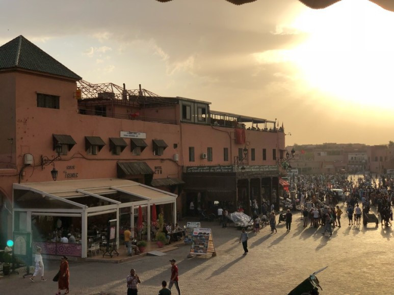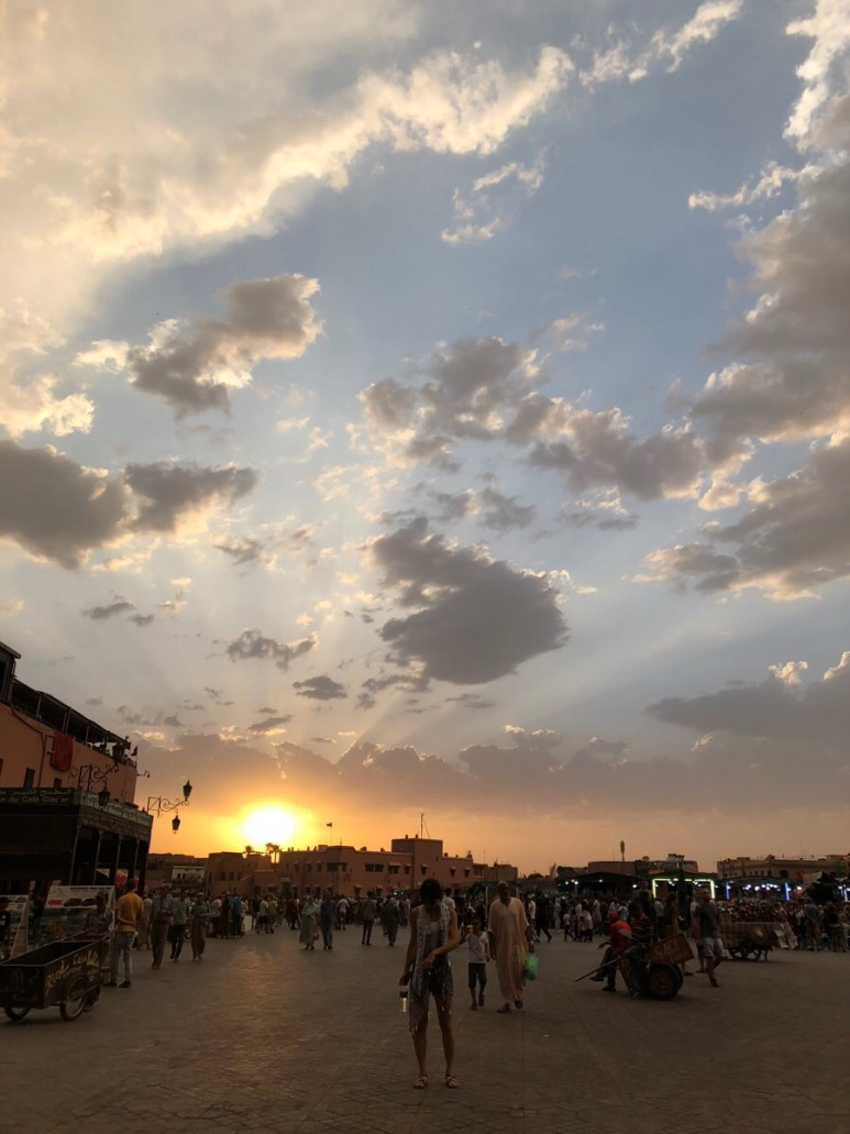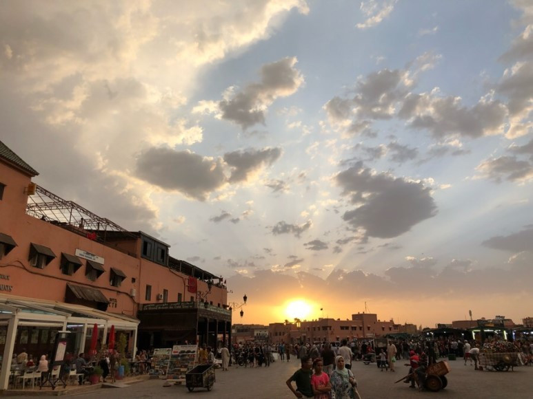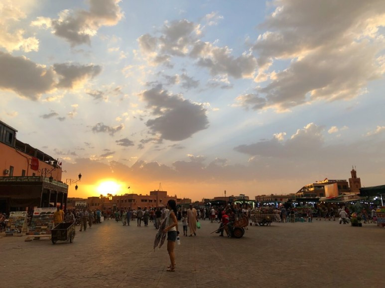 2018 08_ 모로코 마라케시 광장 앞 일몰 속에서