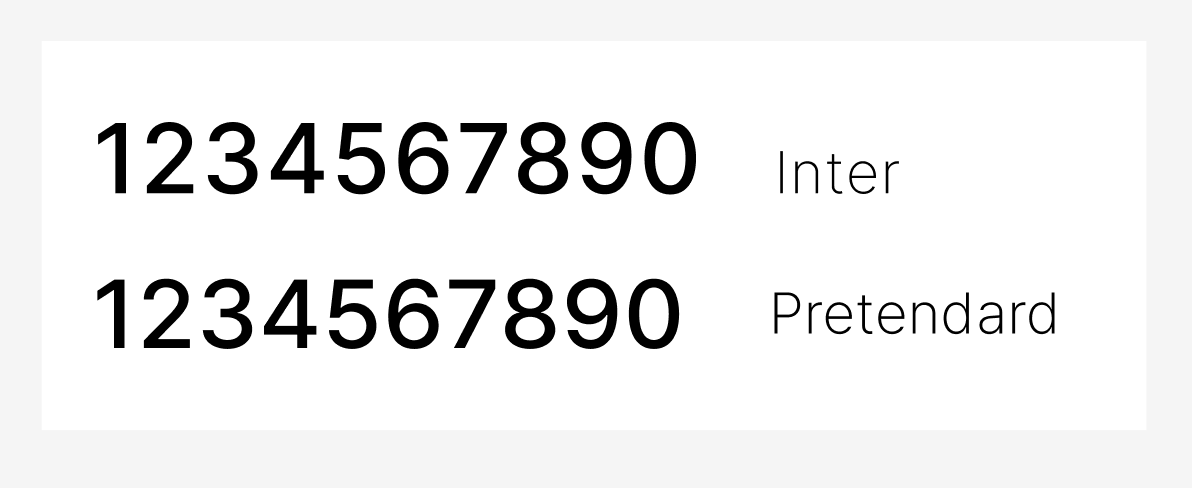 저 같은 경우엔 노토산스가 영어와 숫자로 나타낼 때 너무 못생겨져서 Inter 폰트와 혼용하고 있었습니다. 노토산스의 영어 같은 경우 좀 얇아지는 경우가 있는데 pretendard 같은 경우 Inter 폰트와 거의 흡사하게 뚱뚱하게 표현되어서 더 이상 혼용하지 않아도 된다는 편리함이 있었습니다.