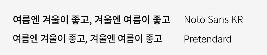 순간적으로 어떤 폰트를 써야 하는지 고민이 되었습니다. 하루 정도 비교해 보고 역시 프리텐다드를 선택했습니다. 노토산스에 매우 익숙해져 있어서 그런것 같아요.