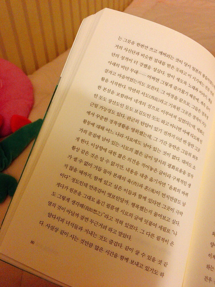 만약 행복했다고 대답해주는 친구가 한 명이라도 있다면 나는 그 밑에 세필로 '나도 그렇게 생각해(我如想之)'라고 덧글을 달아놓을텐데.