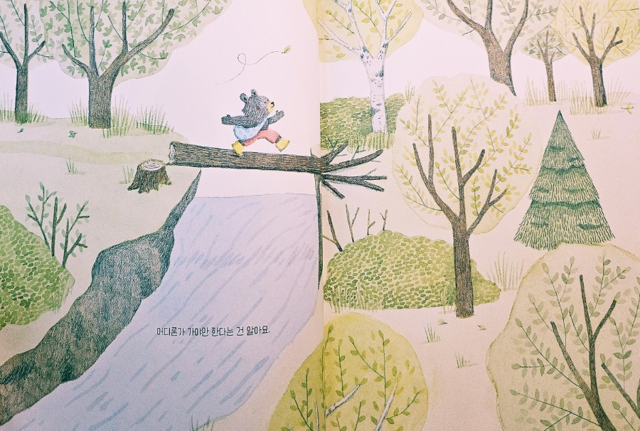 우리 아이들도, 곰처럼 용기 있게 앞으로 나아가는 삶을 살기를, 그리고 우리는 그런 아이들 뒤에서 바라봐주고, 힘껏 응원해 주는 부모가 될 수 있기를 바란다. 아마 곰은 또다시 이곳을 떠날지도 모른다. 하지만 다음번 모험은 이번만큼 두렵지는 않을 것 같다. 한번 해본 일이니까. 이렇게 곰은 성장해 나가고 우리도 우리 아이들도 곰과 함께 성장해 나간다.