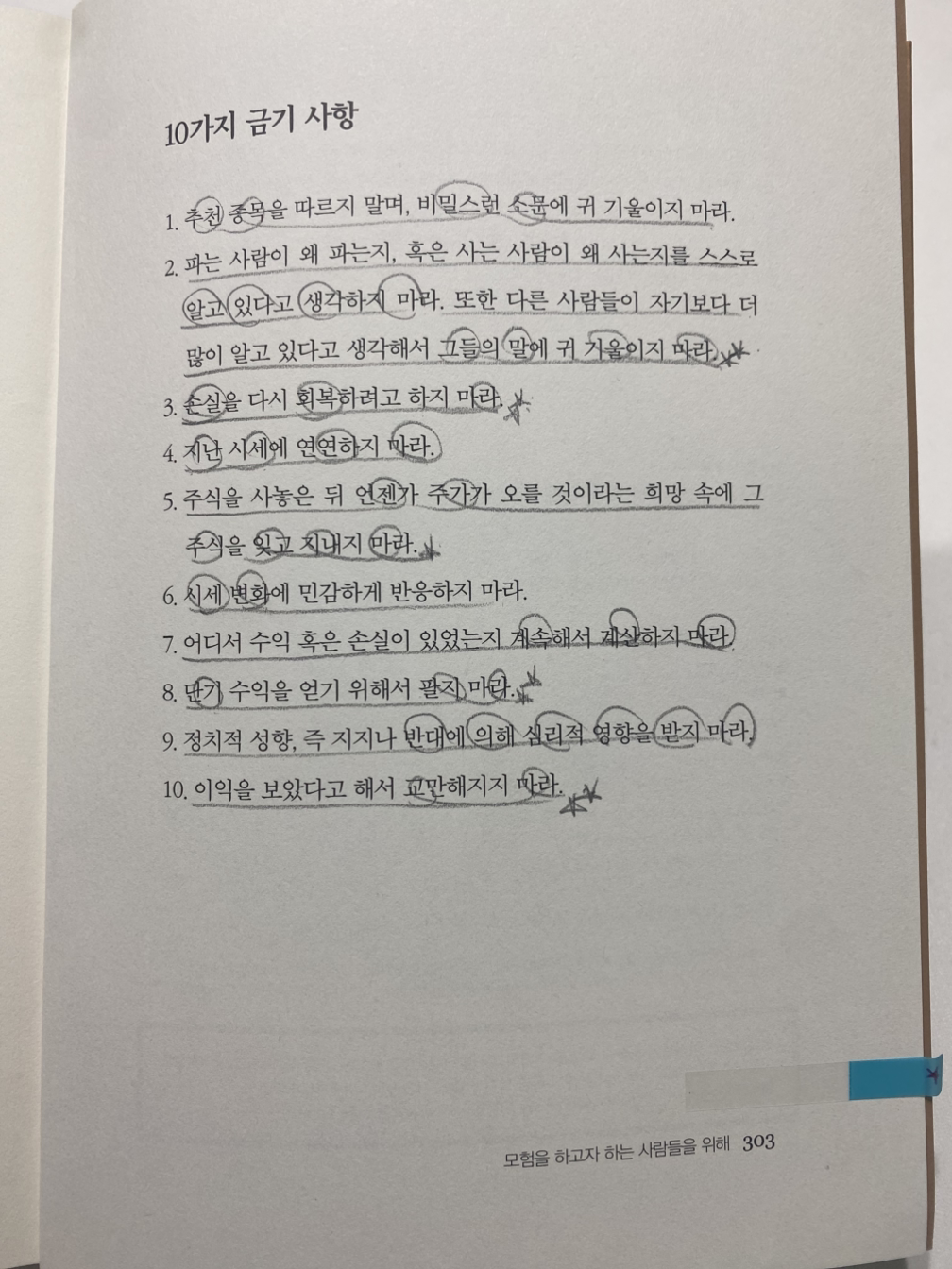 투자자들을 위한 권고 사항과 금기 사항이다.