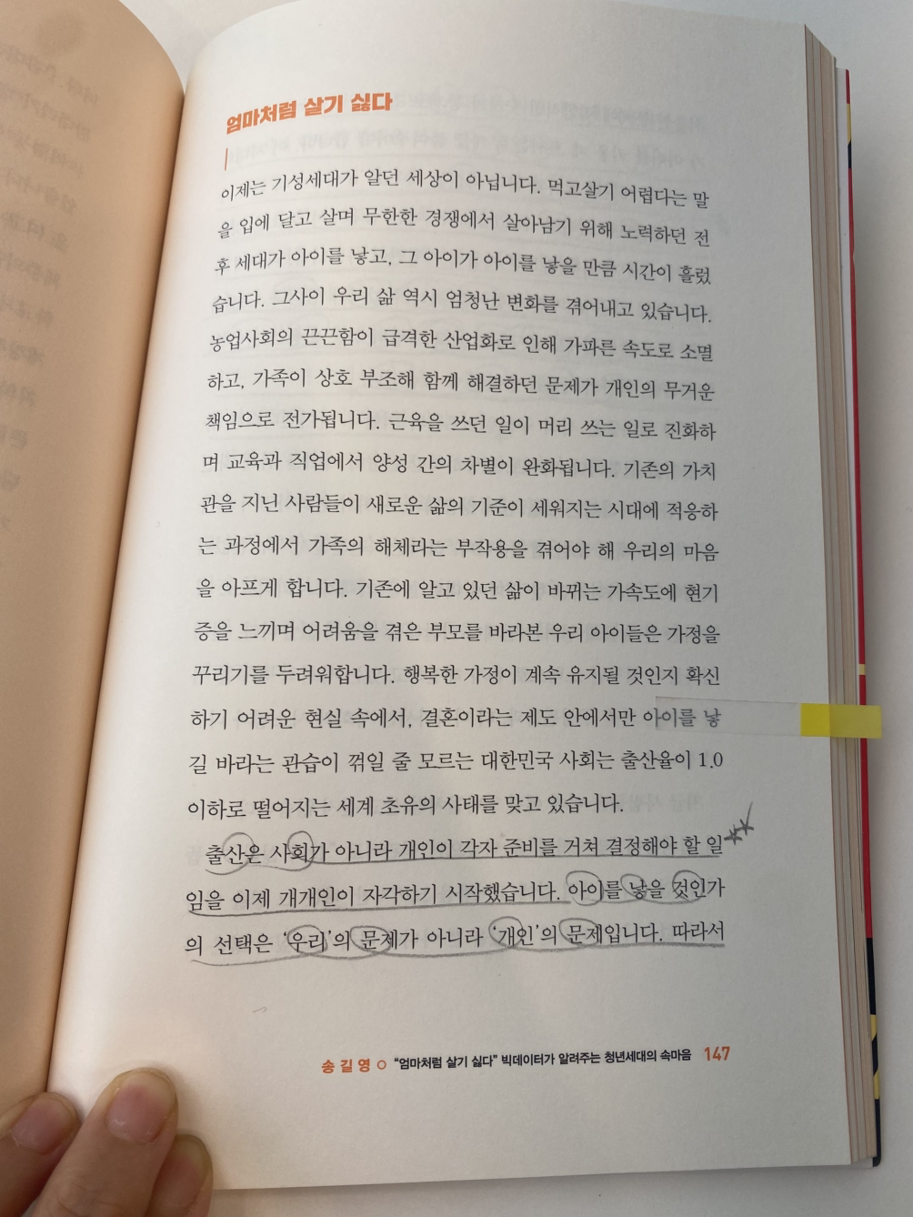 저출산의 문제를 해당 세대에만 떠넘기면 안 된다는 송길영작가님의 말에 공감한다.