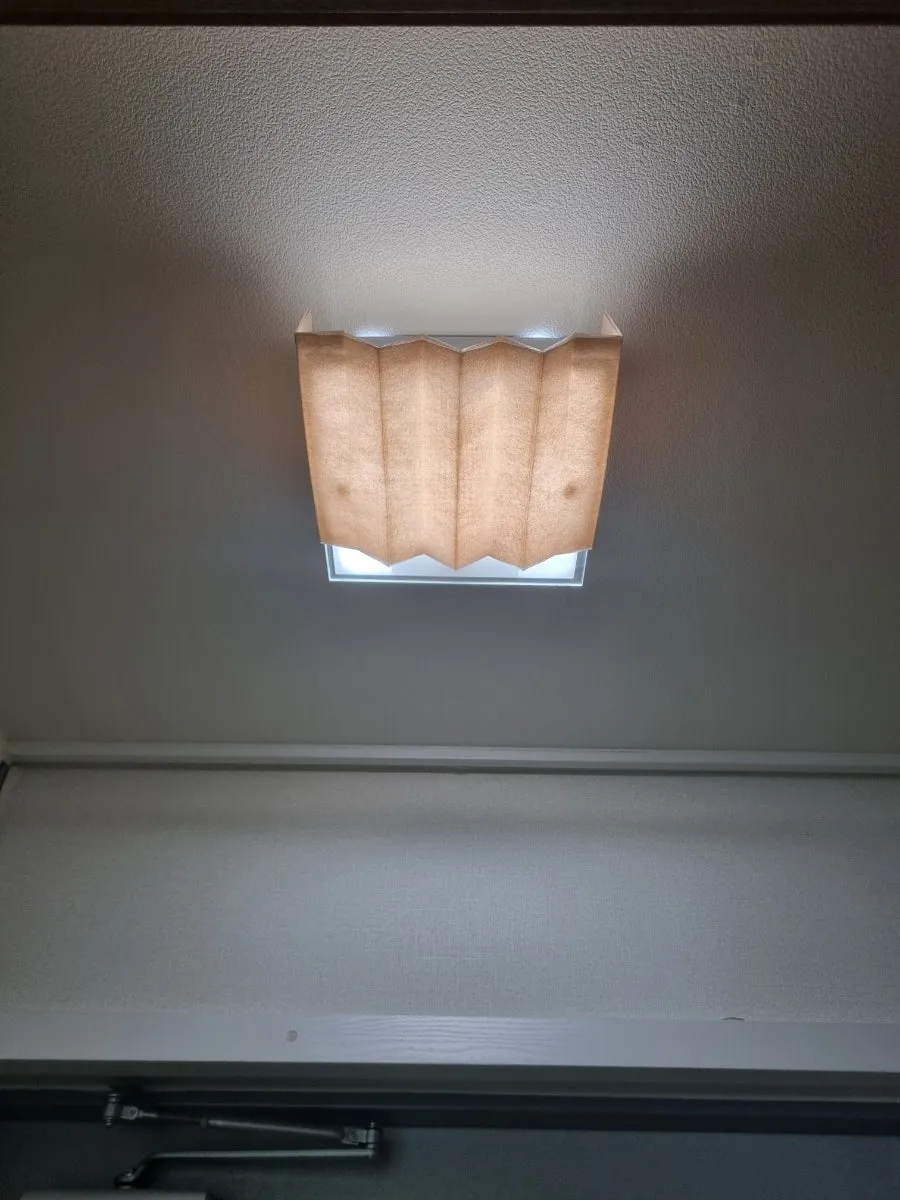 마침 우리 집 세탁실 창문에 있는 셀프 블라인드 길이가 길어, 그 일부를 잘라 센서등에 붙여주었다.