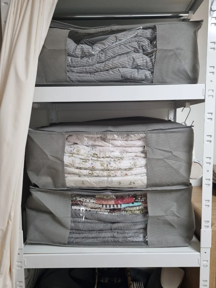 미리 넉넉한 이불 정리함을 구매한 덕에, 곧 다가올 겨울철- 이불 정리가 기다려진다.