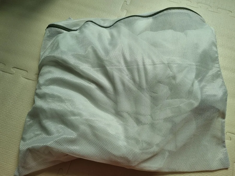 커튼 중간 부분에 고무줄도 하나 정도 묶어주고, 대충 접어 세탁망에 쏙- 집어넣었다.