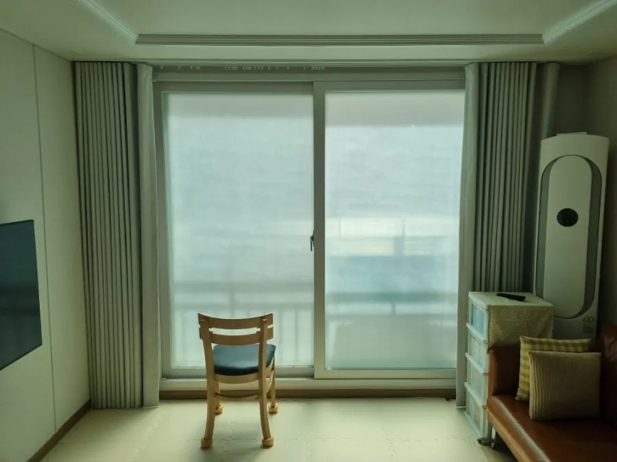 앞 동과 가깝고 자는 시간 외엔 거실에서 생활하는 가족이라 시선 차단을 위해 이렇게 설치했다.