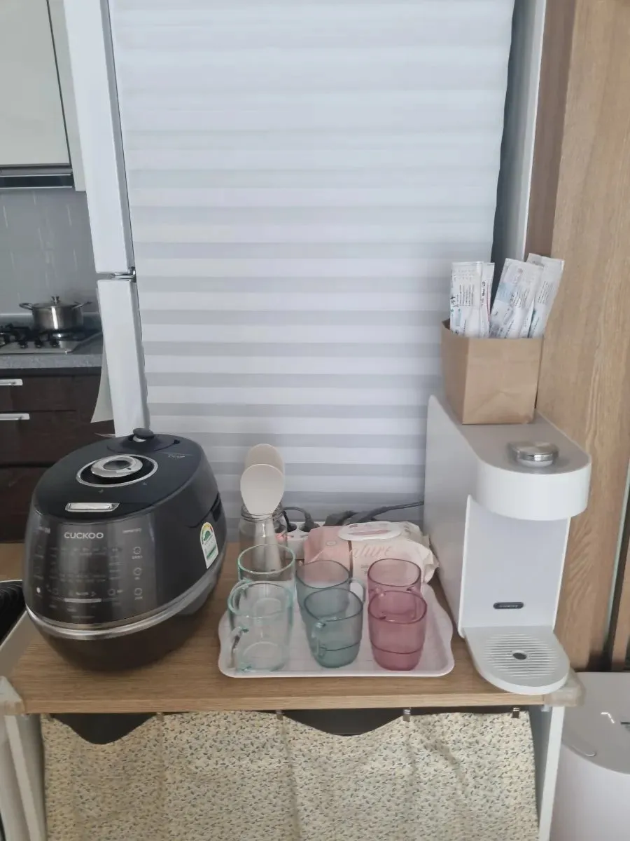 또, 전자레인지 수납장 뒤 밥상이 빠진 덕분에 그 배경(냉장고 옆면)은 좀 더 깔끔해졌다.