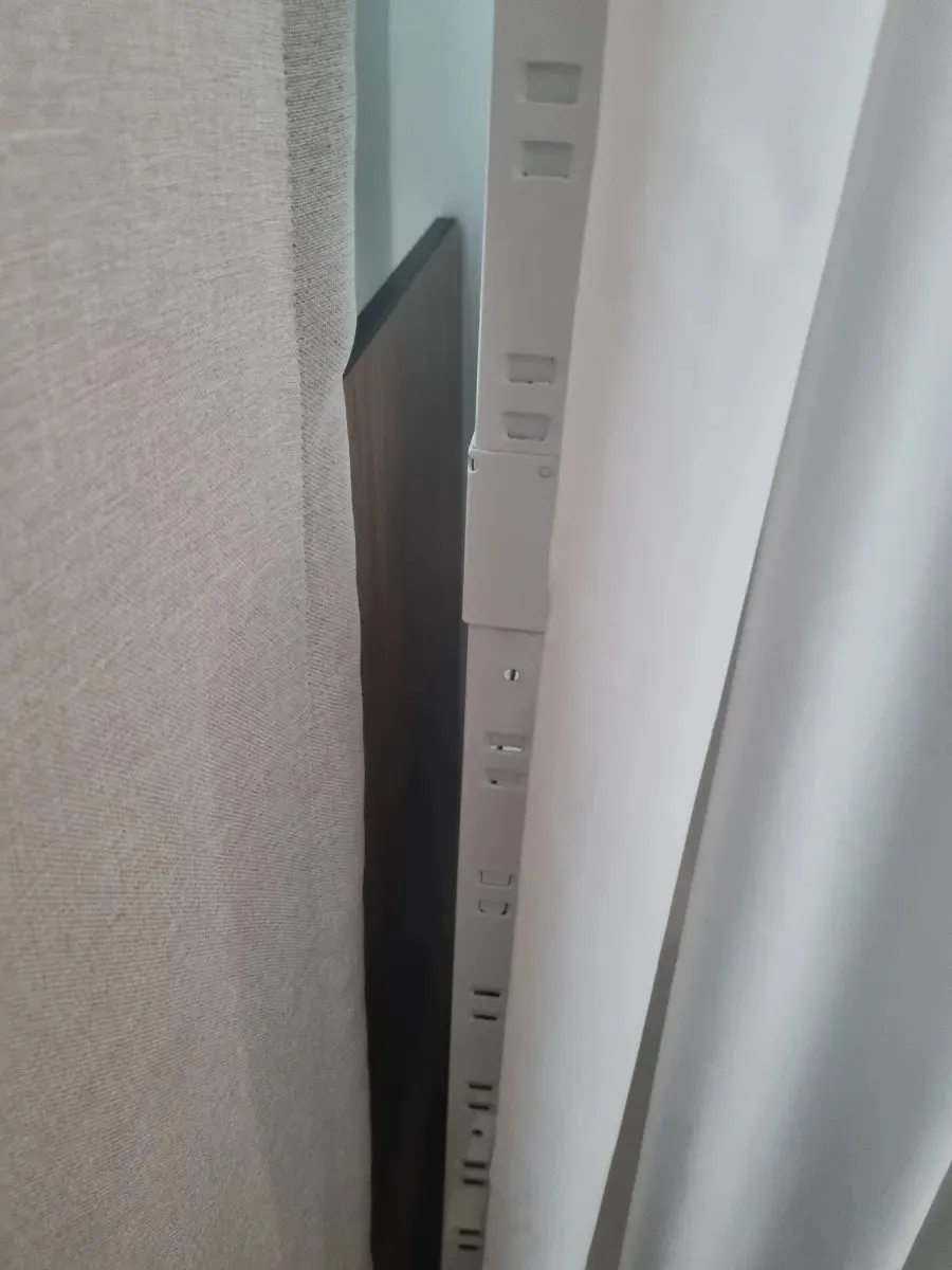 그래서 옷방의 조립식 선반 옆 좁은 틈새로 옮겨주었다.
