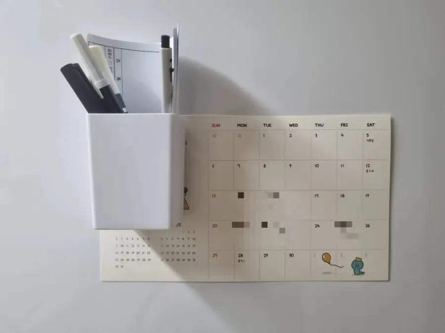 탁상달력은 오려내어 냉장고에 자석 펜꽂이로 붙여주었다.