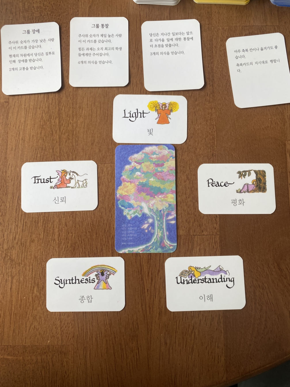 <자기변형게임> 카드로 본 현재 내 삶의 주제에서의 <장애물, 통찰메시지, 천사님들>을 스스로 뽑아 펼쳐보았다. 모든 카드들의 메시지가 늘 내면에서 느껴오고 있던 것들이라 정말 ‘헙!!’ 했다. 내가 아무리 의심을 해도 내 에너지는 나다. 보이지 않아도 함께 하고 계신 분들은 숨김 없이 늘 드러내신다.