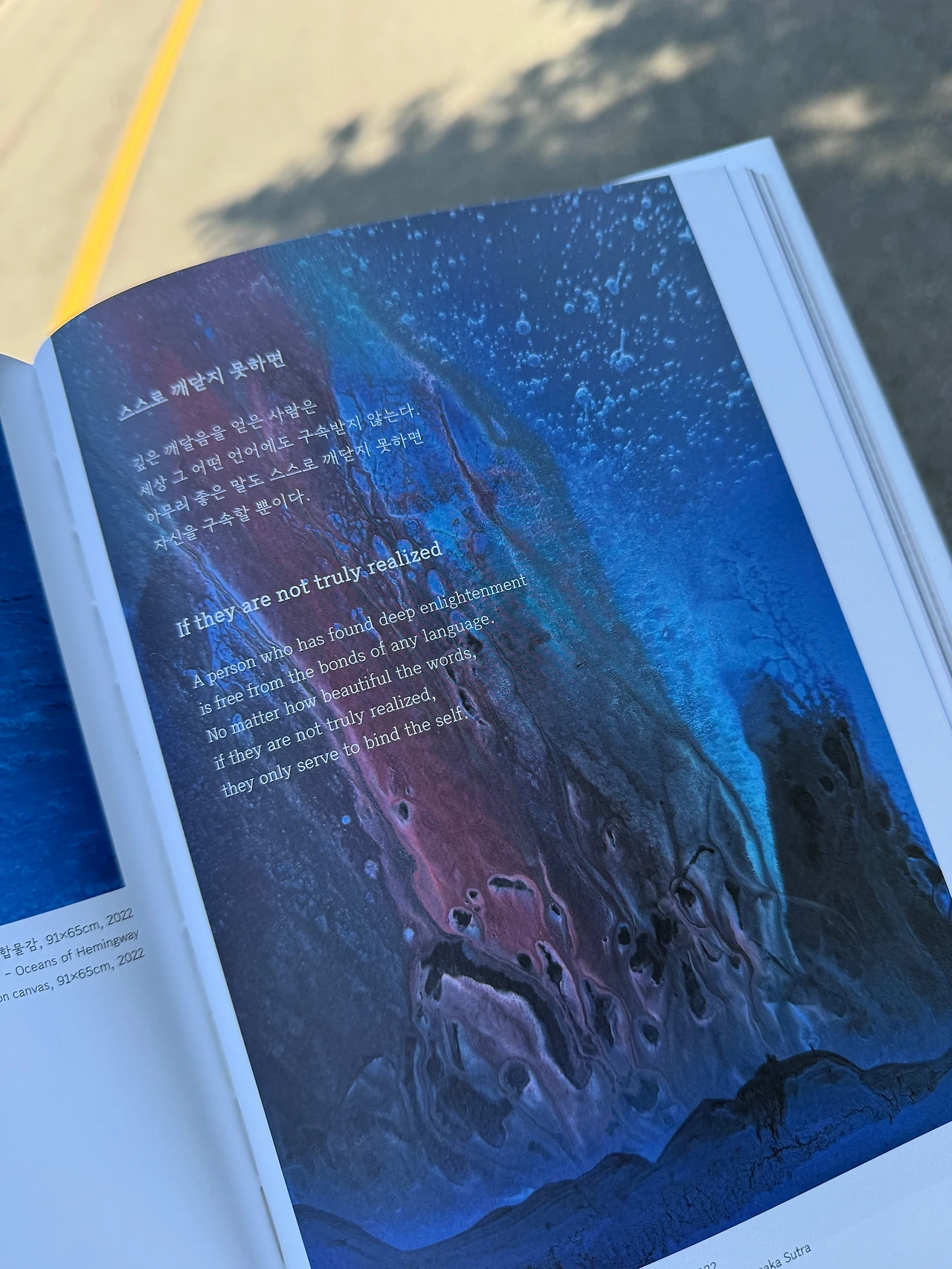 문 중간이 어디인지 궁금해서 물었더니 아홉 살 시인의 설명에 매트릭스 우주를 다녀왔다. 문 중간, 겹겹이 두터운 문 사이에 차원의 세계가 있고, 문에는 또 문이 있지 않느냐고 한다. 방 문을 열고 나오면 여기(거실) 있고 또 이 문이 있고, 우리는 여자/남자, 대한민국 등 여러 개의 문을 열고 여기에 있다고 한다. 그리고 반대로도 마찬가지라고.
