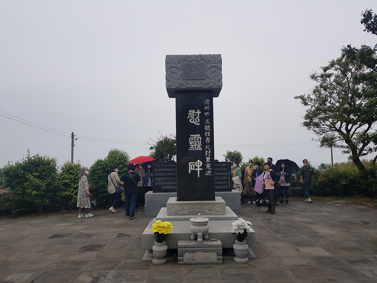 제주 4·3사건 희생자 북촌리 원혼 위령비 등 위령비 위에 태극기가 장식되어 있는 경우가 많았습니다. 설명해주시던 백가윤 대표님처럼 저도 병 주고 약 주는 것도 아니고 왜 여기에 국가의 상징을 달아놓았는지 의문이었습니다.