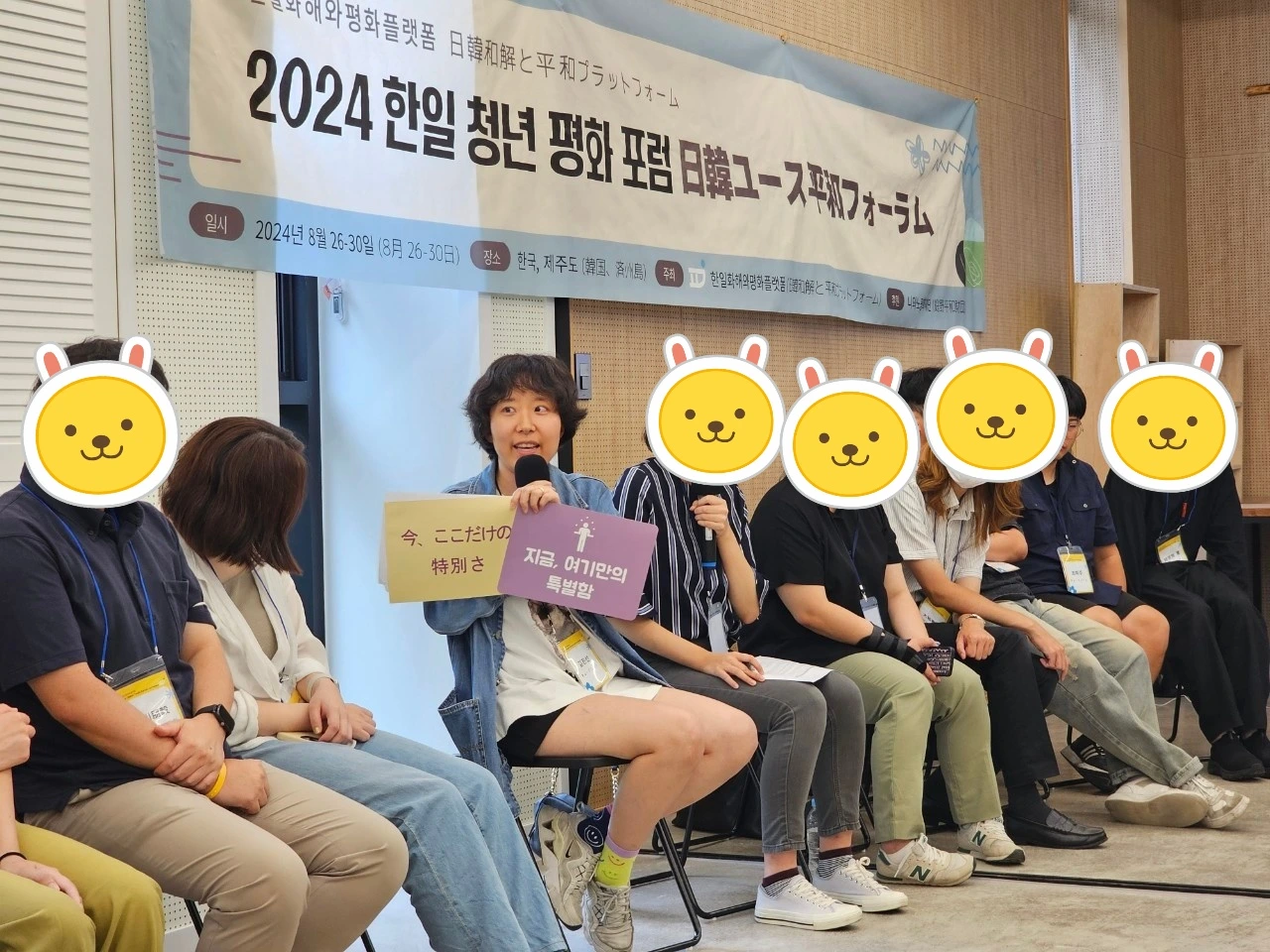 우리들은 2024년 한일청년평화포럼에 참가하기 위해 모였습니다. 우리들은 공감하고, 서로를 알고, 세대와 사리사욕, 구조적인 문제를 넘어 행동하기 위해서 함께 했습니다. 식민지 지배와 분단이 없다면 비참한 학살이 일어나지 않았을 땅, 욕망을 규제하는 힘이 있었다면 세월호도 도착했을 땅, 제주에. 우리는 여기서 4.3이라는 학살의 과거, 그리고 해군기지를 강제하고 있는 현재, 국가폭력의 현실을 마주했습니다.
