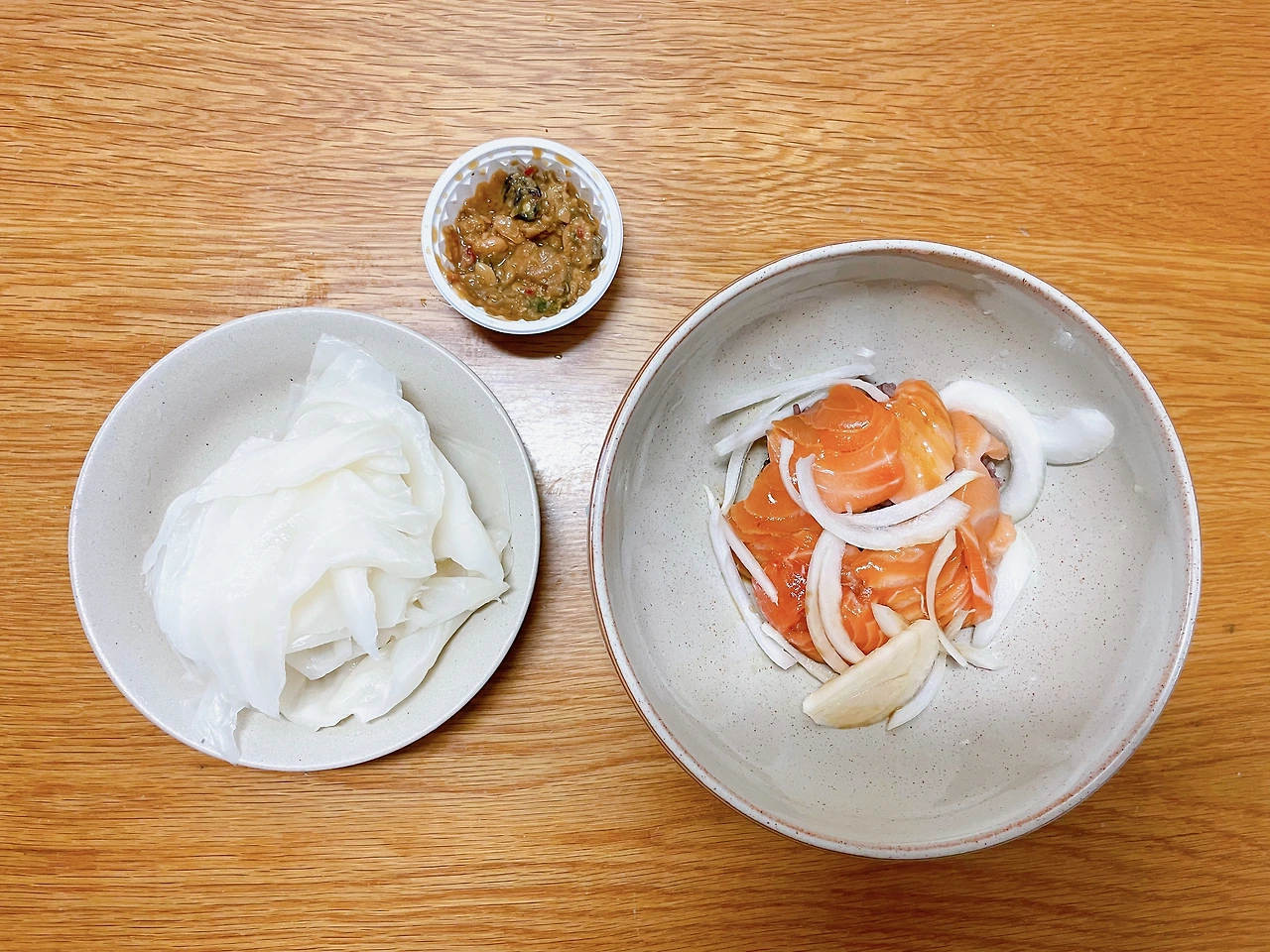 가장 최근의 음식사진은 집에서 찍은 건데 야심 차게 시작한 다이어트의 흔적이 남아있다. 닭가슴살 샐러드와 고구마 그리고 디톡스 음료로 시작. 다음날은 삶은 양배추와 강된장, 연어덮밥으로 건강식 추구(이렇게 많이 먹었다고…??) 보기만 해도 뿌듯했지만 슬픈 사실은 내 뱃살은 여전하다는 것이다. 샐러드를 먹는데 왜 살이 안 빠질까. 풀리지 않는 미스터리다.