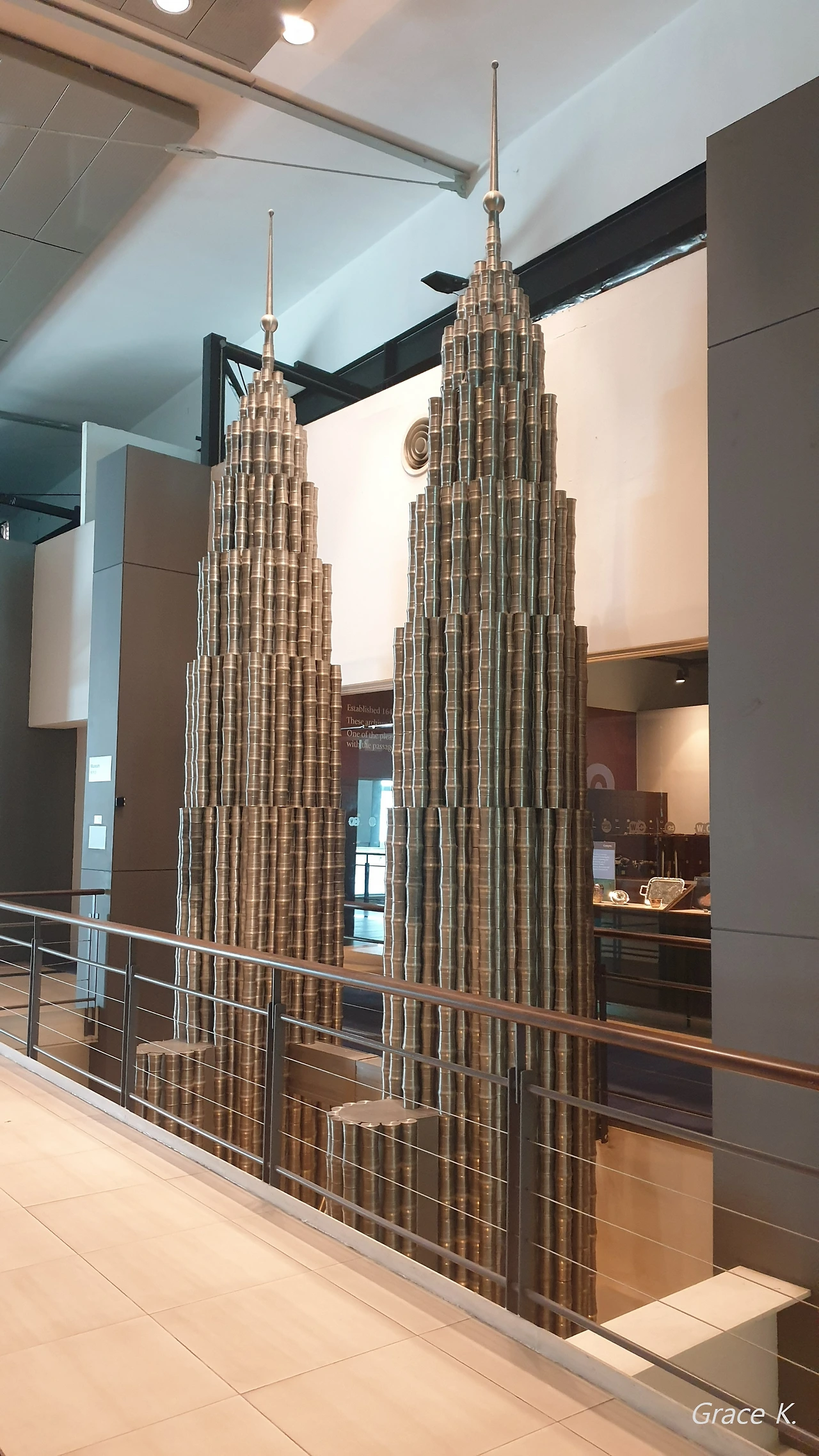 박물관을 둘러보니 주석을 이용한 다양한 물건들이 많았다. 그릇류부터 장식품, 조각 등 생각보다 유용하게 쓰이는 물질인 듯했다. 입구 앞에 있는 악어 조형물, 그리고 전시관 중앙쯤에 있는 주석으로 만든 페트로나스 트윈타워 등은 매우 인상적이었다. 규모도 크고 회색톤의 물질이 저렇게 작품으로 만들어질 수도 있구나 싶었기 때문이다. 가공방식에 따라 다양한 형태로 활용될 수 있다는 점도 흥미로웠다.