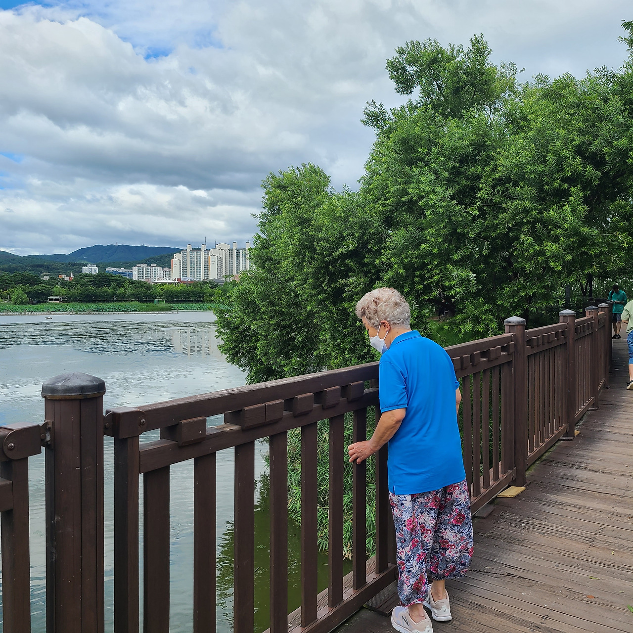 그렇게 엄마와 3주간을 거의 매일같이 걸었나 보다. 올해 유난히도 길었던 장맛비가 억수로 쏟아지거나, 내가 외부 일정이 있어 나가는 날을 제외하곤 나를 위해서든 엄마를 위해서든 서로 걸으려고 노력했다. 보통 집에서부터 출발해 약 2.3킬로의 만석공원을 한 바퀴 돌고 오면 1시간이 걸렸다. 처음에는 엄마가 끝까지 걸어서 집에까지 올 수 있을까 속으로 걱정이 되었다. 힘들면 벤치에 앉아서 쉬시도록 권해드렸다. 엄마는 첫날엔 정확히 4번을 벤치에 앉아 쉬셨다. 다음날엔 3번만 쉬셨고, 내가 전화받느라 까먹고 쭉 걷는 바람에 1바퀴를 쉬지 않고 걸은 적도 있었다. 그래도 엄마는 불평하지 않고, 참을 줄 아셨다. 아니 점점 걷는 힘이 늘기도 하셨다.