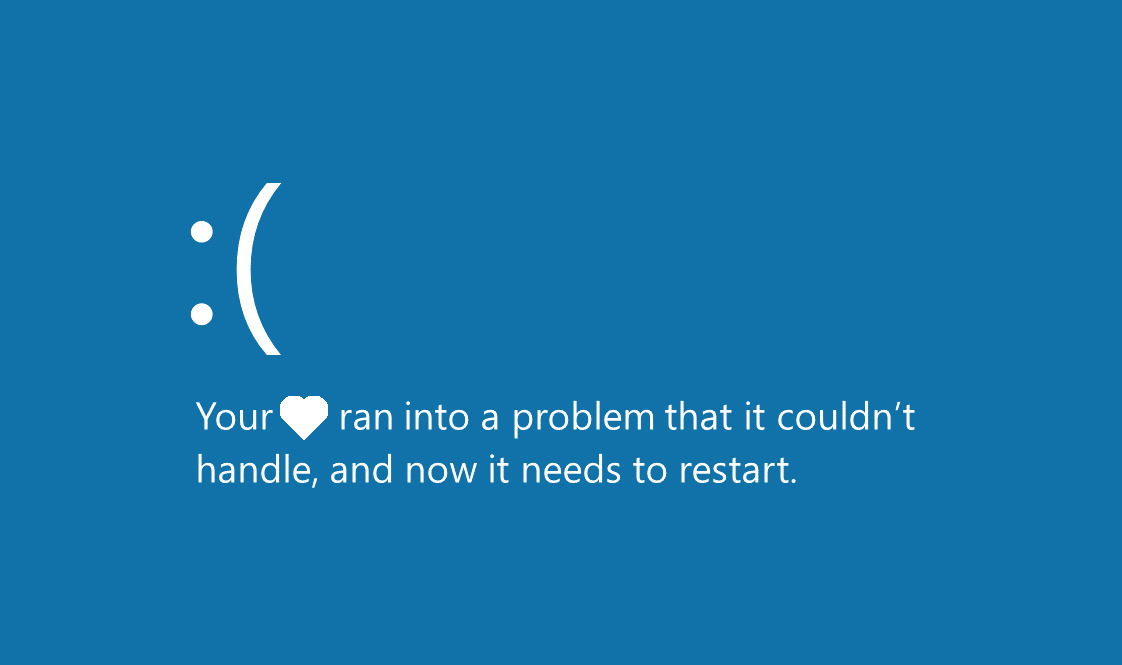 your heart ran into a problem that it couldn't handle, and now it needs to restart. (당신의 마음은 감당할 수 없는 문제에 부딪쳤고, 이제 다시 시작해야 합니다.”)