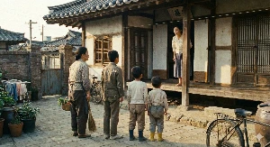 고아들처럼 졸라니 서서 방에서 놀라서 나온 엄마를 보고 '엄마~ 집에 가자.' 했던 순간의 장면이다.