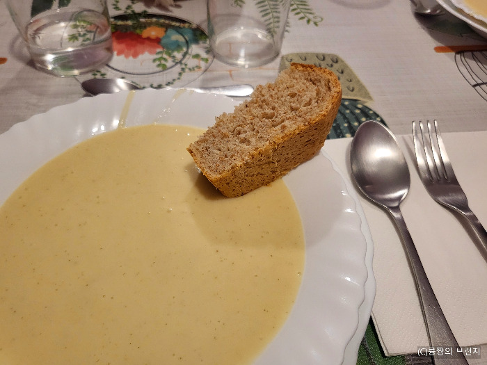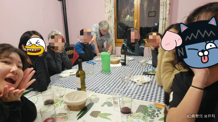 큰 식탁에는 이탈리아에서 오신 분과 프랑스에서 오신 분들이 계셨고 조금은 조용하지만 너무 떠들썩하지 않는 분위기 속에서 천천히 저녁을 먹었다. (우리는 그 분위기가 너무 좋았다고 후에 얘기를 나눴었다ㅎㅎ)