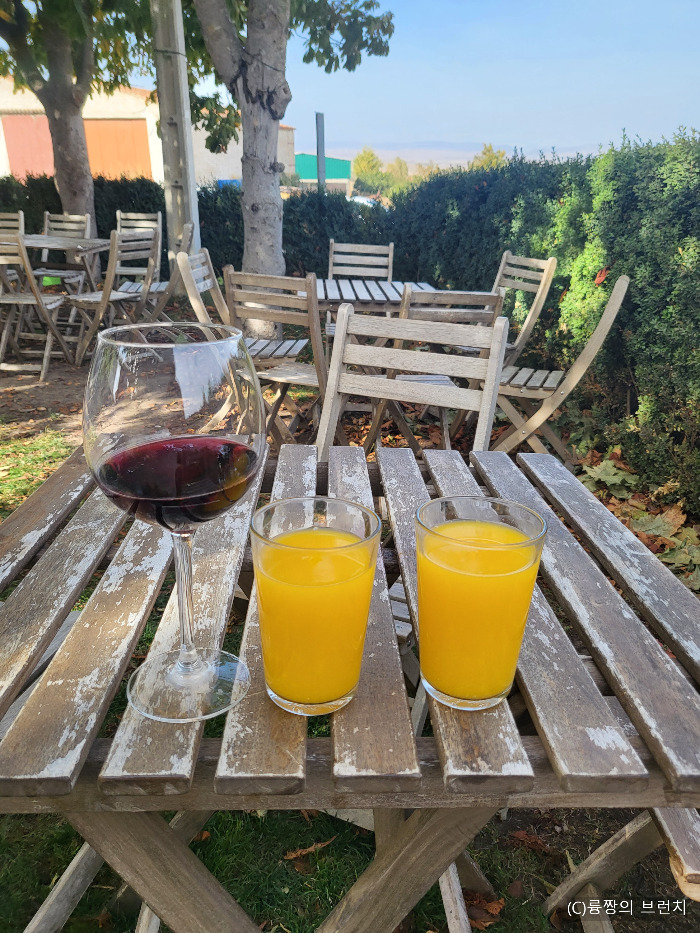 잠시 휴식을 하며 프랑스 순례자와 같이 살룻- 건배도 했다. 비록 난 오렌지 주스 였지만 말이다.