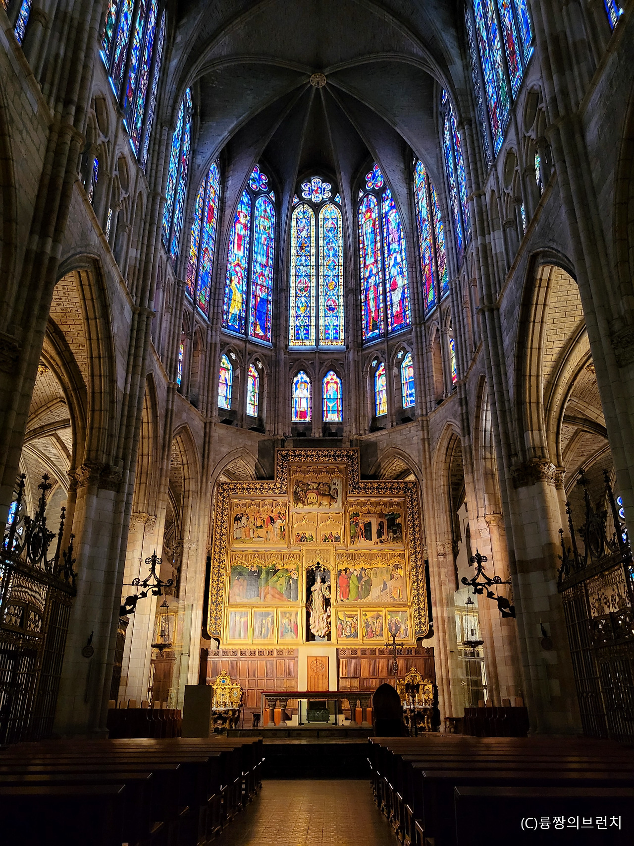 긴 밤이 지나고 새로운 날이 밝아왔다. 모처럼 오롯이 쉬는 날을 맞게 된 우리들은 아침 일찍 성당 내부를 구경하러 가기로 했다. 달달한 초코맛 시리얼을 와그작 먹으며 레온성당에 갈 준비를 했다. 대략 7유로쯤 하는 티켓을 사들고 나란히 줄을 서서 들어갔는데, 외부와는 또 다른 화려한 공간을 마주하게 되니 정말로 신기한 느낌이 들었다. 밤에 보는 것과 내부에 들어와 성당 안을 보는 것은 정말로 달랐다. 외부의 빛을 받아 화려한 색을 내는 스테인드글라스를 넋 놓고 바라보았다. 층고는 또 어찌나 높은지 고개를 위로 쳐들었어야 했는데 그 때문에 목은 조금 아팠지만, 시선을 뗄 수가 없을 만큼 화려하며 고요한 분위기를 자아내기엔 너무나 충분했다.