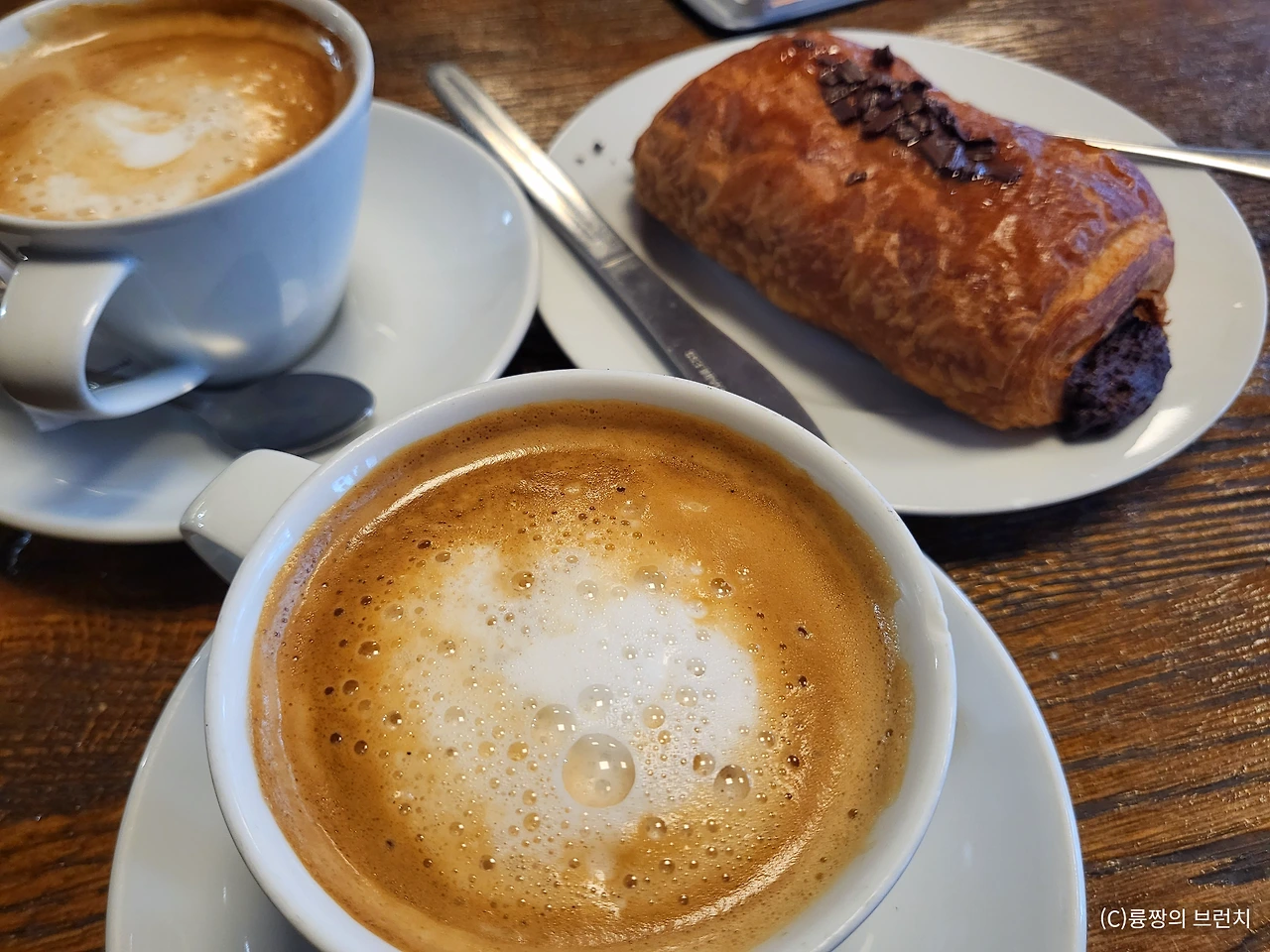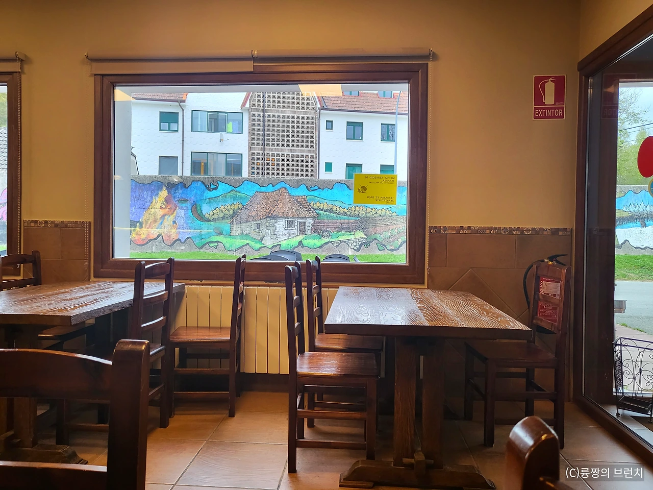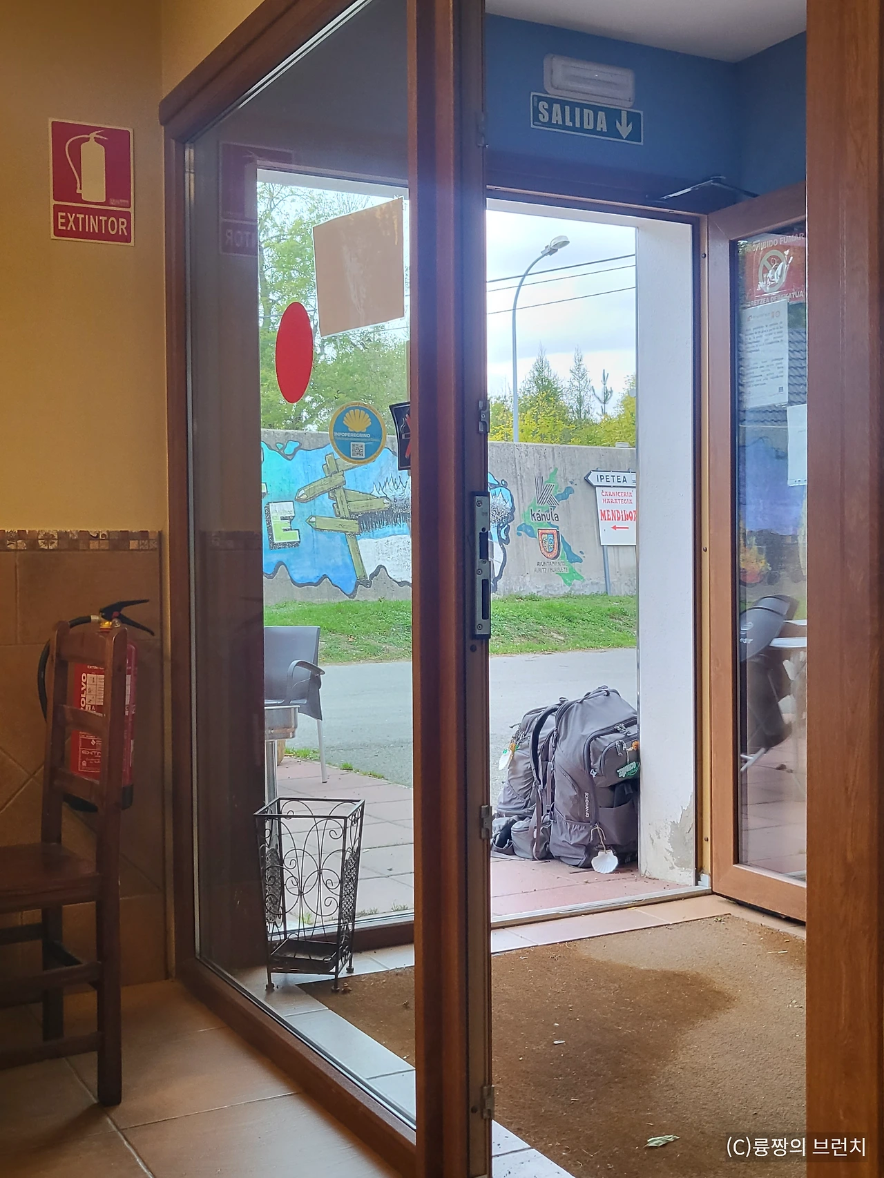 우리의 숙소는 론센스바예스의 옆 동네부르게떼(Burguete)에 위치해 있었고 아직 알베르게 체크인 시간이 되지 않아서 론센스 근처 카페인 Goxona에서 잠시 머물렀다. 난 따듯한 카페 콘 레체와 뺑오쇼콜라를 먹으며 원목 의자에 앉아 쉬며 일기를 썼고, 언니는 노트북으로 일을 하며 각자의 시간을 보냈다.