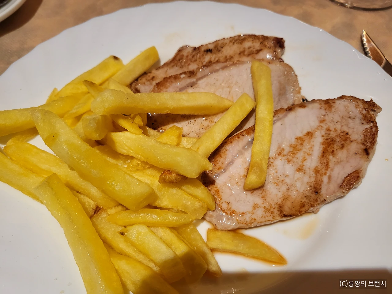 마을에 유일하게 문을 연 식당으로 들어가니 모든 순례자들과 주민분들이 그곳으로 다 온 모양이었다.그만큼 시끌벅적했다. 그 틈을 비집고 들어간 우리는 주문에 성공을 했고 따듯한 버섯 스프와 메인인 스테이크 그리고 디저트, 음료까지 야무지게 먹고 다시 숙소로 돌아갔다. 조금 쉬니 좀 괜찮아졌지만, 여전히 코막힘과 목은 그대로이기에 컨디션 조절을 잘해 내일은 꼭 완주를 하고 싶다는 생각이 드는 순례 첫째 날의 밤이었다.