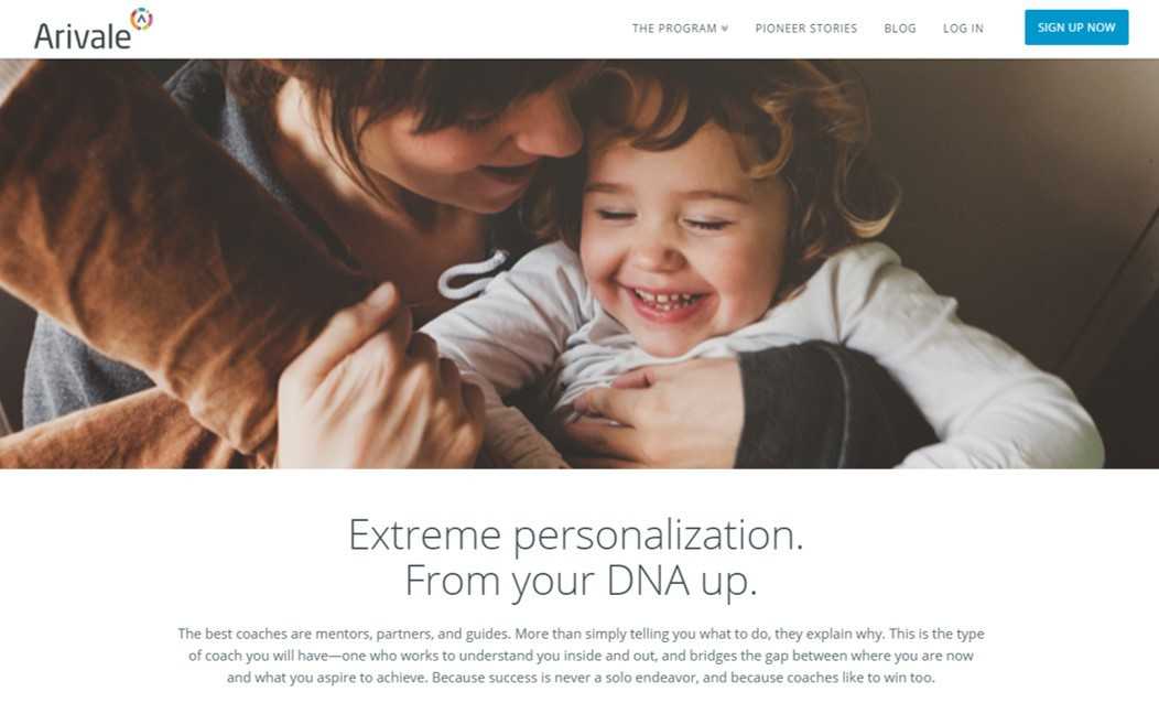 Arivale(https://www.arivale.com/)은 유전 분석/ 혈액분석/ 타액 분석/ 마이크로바이옴 분석과 라이프로그를 기록할 수 있는 Fitbit을 제공하고 있고 있습니다. 외부 임상 파트너사인 LabCorp에 의해 유전형과 표현형 데이터들이 분석되고, Fitbit으로부터 얻어지는 라이프로그 데이터(활동, 심박, 수면 등)들이 Dashboard를 통해 연결되어 사용자에게 건강한 삶을 영위할 수 있도록 통합적인 데이터를 제공하고 있습니다. 또한, 사용자는 앱을 다운로드하고 온라인 평가를 완료하여 목표, 건강 기록 및 라이프 스타일, 스트레스 수준, 성격 및 행복을 공유할 수 있도록 하였으며, 이를 통해 코치와 쉽게 의사소통을 하고, 지속적으로 상태를 자각할 수 있도록 하여 습관을 변화시킬 수 있도록 서비스를 제공하고 있습니다 (7). 이들의 사업 방향은 각 사용자 별로 개인화된 데이터 클라우드를 만들어 서비스를 진행해 주는 것으로 보여, 향후 엄청난 서비스로 발전할 수 있지 않을까 생각됩니다.