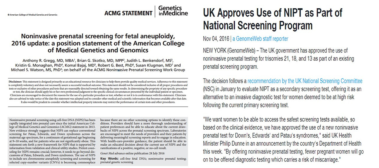 기존의 침습적 양수 검사에 비해 안전하고, 더 빠른 시기에 이상 여부를 확인할 수 있다. 산모의 연령이 35세 이상인 경우, 가족력이 있는 경우, 특정 유전질환의 빈도가 높은 인종의 경우, 산전 초음파의 이상 소견이나 산전 선별 검사에서 위험도가 높게 나온 경우에 해당하면, 염색체 이수성의 위험이 증가하므로 검사를 시행하는 것이 좋을 것으로 생각된다. 최근 ACMG (America College of Medical Genetics and Genomics)에서 NIPT 기술을 실제 진단(13, 18 그리고 21번 염색체 이상) 검사에 활용할 수 있도록 하는 권고안을 발표하였으며, 영국은 NIPT 서비스를 national screening system의 검사 항목에 포함시키는 등 NIPT 기술을 실제 활용하기 위한 노력들이 계속되고 있다.