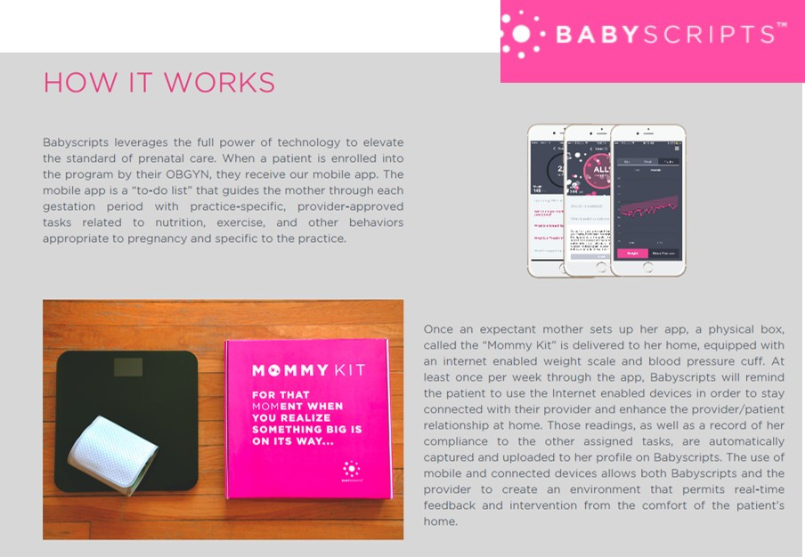 사례로 소개드릴 Babyscripts라는 회사는 처음 "임산부 건강+태아 건강"이라는 콘셉트로 앱을 활용한 비즈니스를 시작하였으나 기대와는 달리 많은 사람들이 중도에 사용을 중단하게 되었다고 한다 (3). 생각해 보면 이러한 문제는 Babyscripts만의 문제는 아닐 것 같다. 생각해 보자. 지금 나의 스마트폰에서 실제로 활용하고 있는 앱이 몇 개나 되는지? Babyscripts는 이러한 앱 이용자의 사용 지속성을 고민했고, 그에 대한 해결책으로 서비스를 신청할 때 와이파이 체중계와 혈압계를 제공했다고 한다.