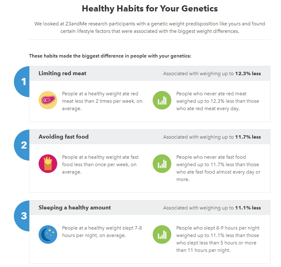 23andme는 필자뿐만 아니라 많은 분들이 알고 계시는 개인 유전체 분석 회사이다 (3). 이제는 단순 유전자 분석 결과만을 제공해주는 것에서 벗어나, 실제적인 라이프 스타일을 코칭해 주는 영역에 다가서고 있다. 최근에는 Lark와 협력하여 인공지능 기술과 유전자 정보를 기반으로 디지털 건강 코칭을 제공하고 있으며, 영양 유전체와 관련해서는 전문가들이 유전자 정보 기반에 음식에 대한 가이드를 제시해 주고, 먹는 식사 내용에 대해 피드백을 주어 행동에 변화를 줄 수 있도록 프로그램을 제공하고 있다.