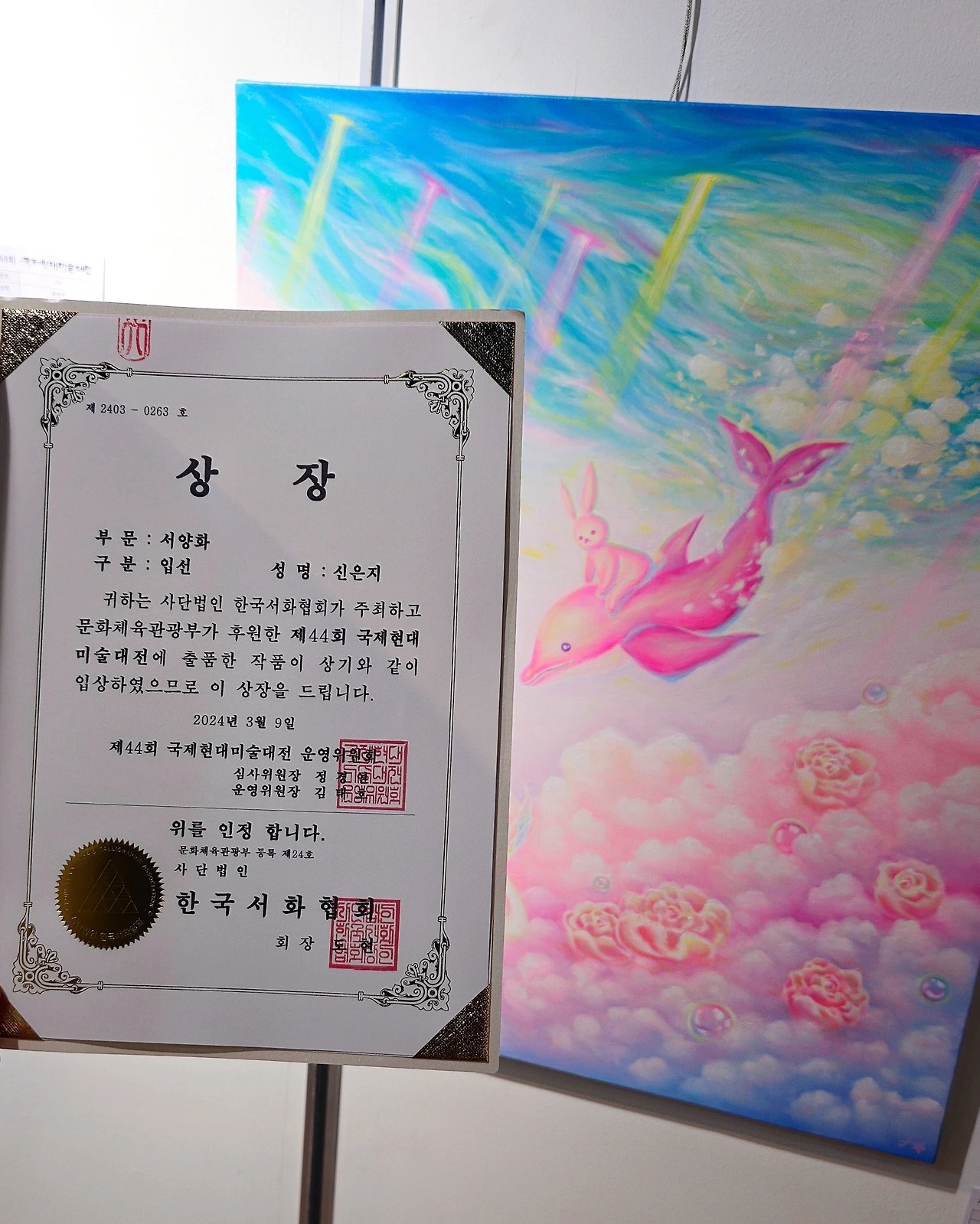 전시와 작은 아트페어만 참여를 하다가 처음으로 상을 수여하는 공모전인 한국서화협회 국제현대미술대전에 지원을 했다. 딱히 상 욕심은 없다고 생각했는데 그래도 비전공자 미술작가로서 인정이 조금 고팠나 보다.