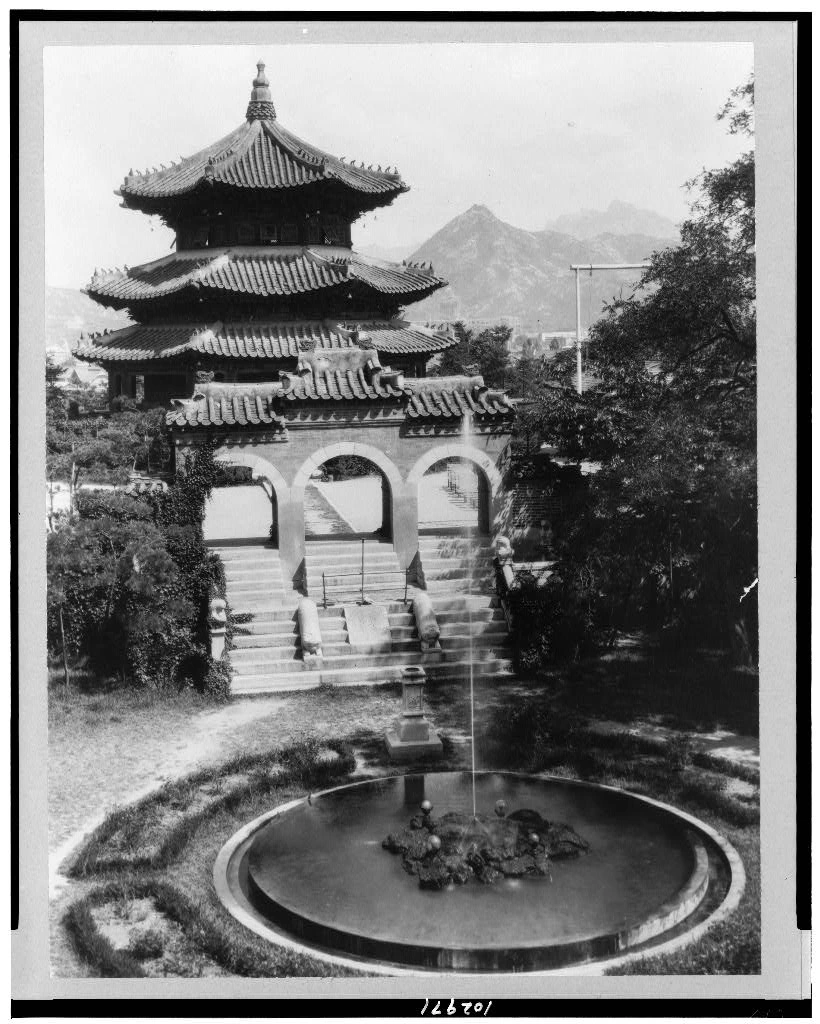 황궁우의 현재와 과거 모습. 한때 삼문 앞에 분수대가 놓인 적도 있었다.