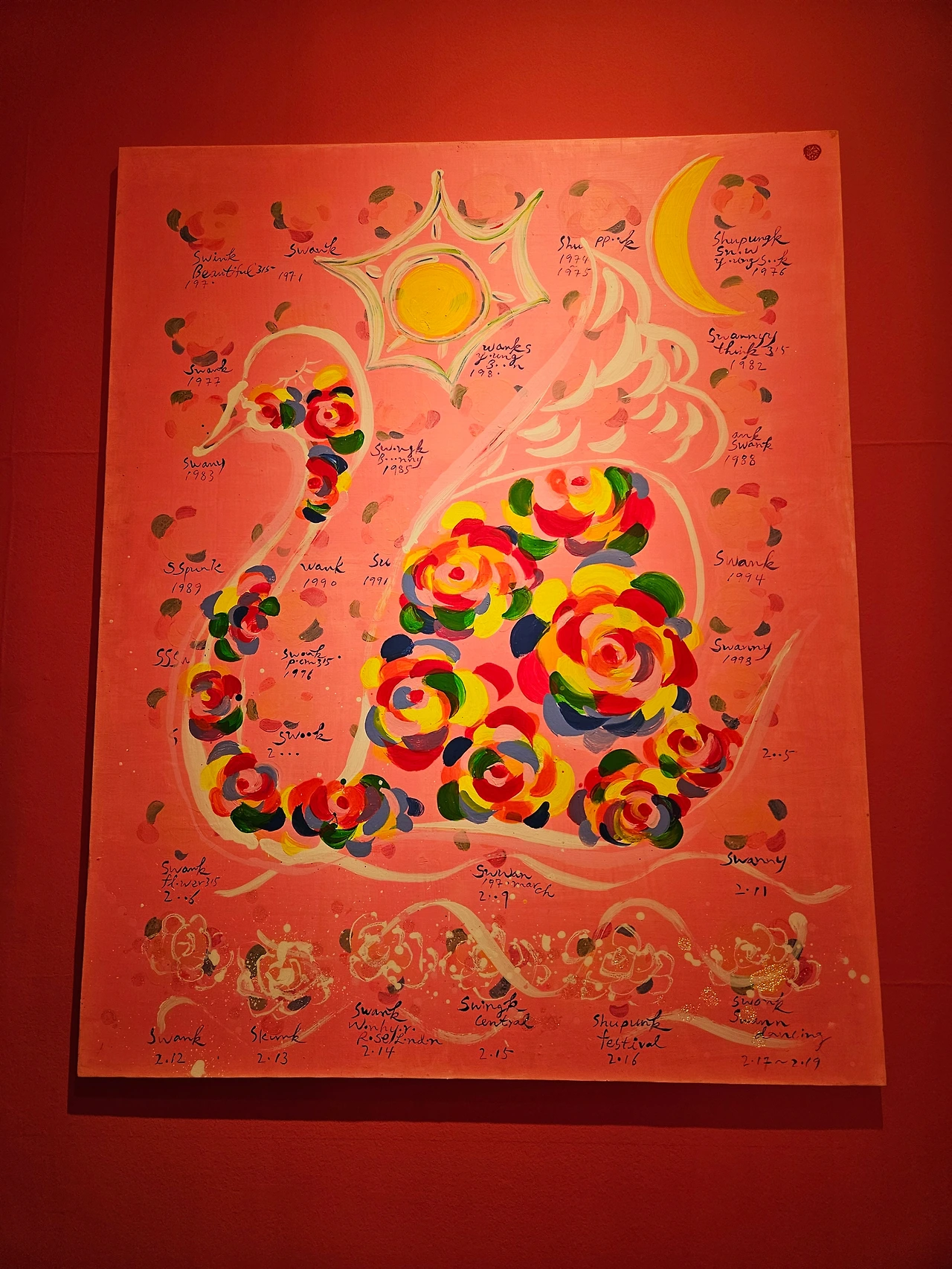 지하 1층에 펼쳐진 <분홍 인생>(2020)을 맞닥뜨리면 작가의 무한한 에너지와 열정의 끝은 어디일까 가늠이 안 될 정도다. 고인이 된 모친의 의상실인 '스왕크(Swank)'에 대한 헌정이자 작가의 세계관을 한데 담은 소우주처럼 보인다.