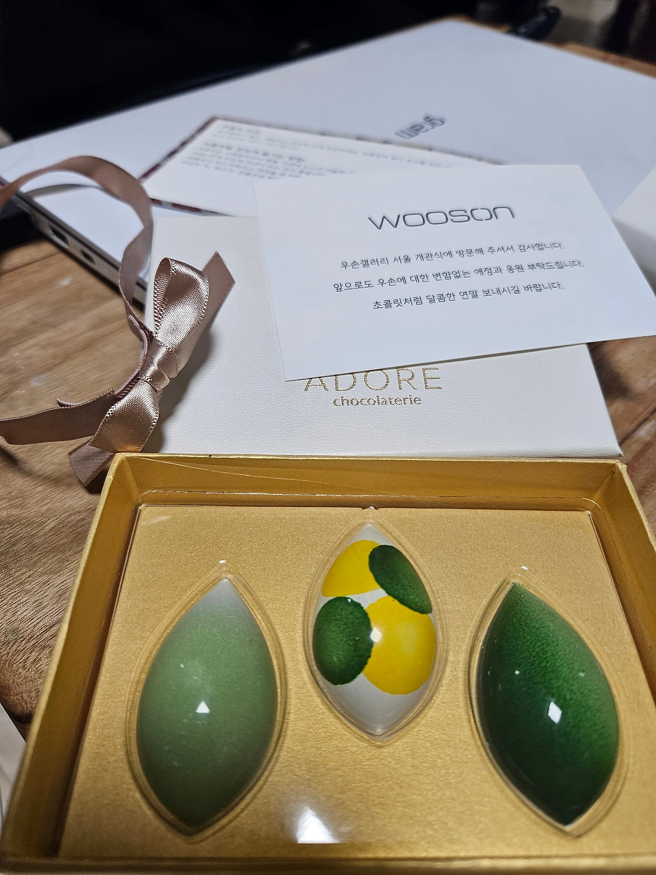 개관전 기념 선물로 예쁜 초컬릿을 받았다.