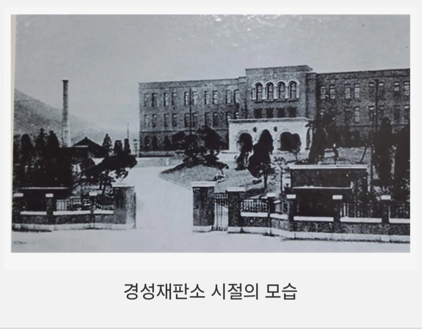 건물은 일제 강점기인 1928년에 지어진 경성재판소라 불린 경성지방법원이었다. 법원이 지어지기 한참 전인 1886년에는 우리나라 최초의 근대식 관립학교인 육영공원이 이 일대에 들어선 적이 있다. 이후 1895년에는 우리나라 최초의 근대식 재판소인 평리원이 들어섰고 대한제국 말기에는 토지조사국이 들어서기도 하는 등 여러 근대 기관들이 거쳐 갔다. 일제강점기로 들어서면서 원래 종로에 위치했던 경성재판소가 낡고 업무도 늘어나자 일제는 소위 “불령선인”들을 단죄하기 위한 재판소를 새로 짓기로 했다. 기왕이면 어디서나 잘 보일 수 있는 높은 곳에 최대한 압도적이고 권위적으로.