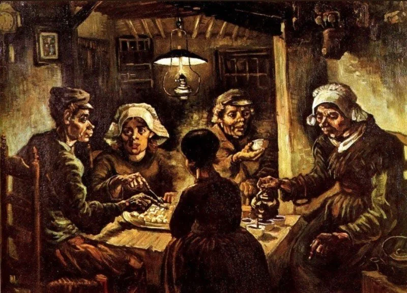 고흐의 초기작인 <감자를 먹는 사람들>. 색감이 거의 없고 어두운 실내를 빛과 그림자의 대비로 표현한 독특한 작품이다.
