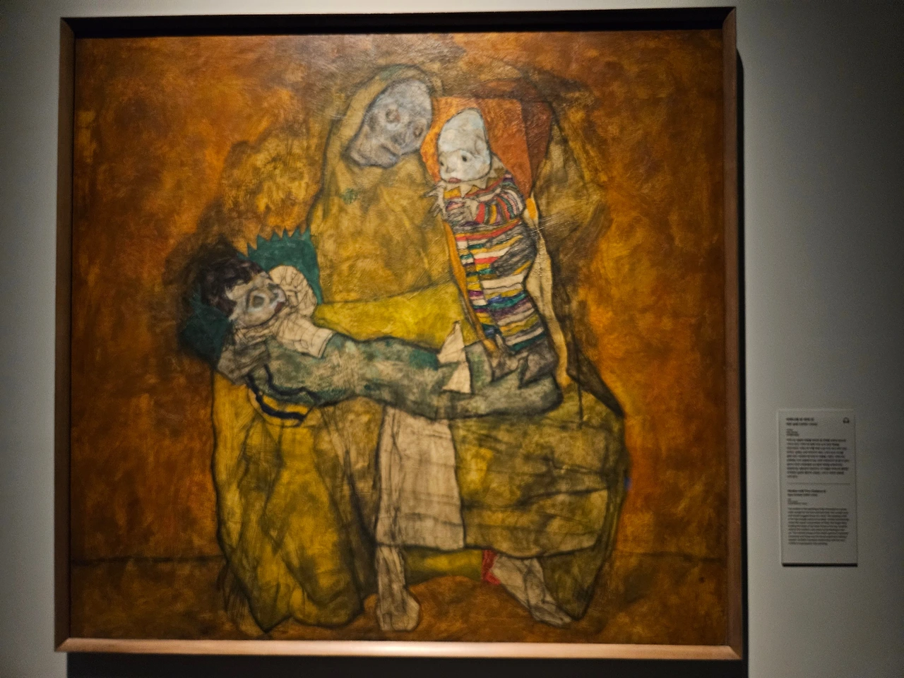 <어머니와 아이>(1912)에서 자신과 어머니와의 불안정한 관계를 묘사했다. <어머니와 두 아이 II>에서는 해골이나 유령 같은 어머니와 죽은 아이 그리고 공중에 떠 있는 듯한 어린아이를 통해 어머니와 여동생, 자신의 불안정하고 불행한 유년을 보여준다.